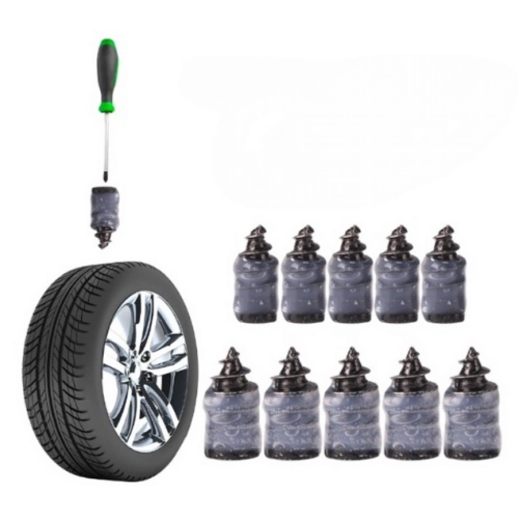 LASTİK TAMİR KİTİ KAUÇUK VİDA SETİ1. Lastiğe zarar vermez, hava kaçağı olmaz. Lastik yarasına tamir vidasını takarak basit ve verimli bir lastik onarımı sağlayabilirsiniz.2. Lastikte  yüksek bağlantı mukavemetine ve iyi sızdırmazlık performansına sahiptir,.3. Kullanımı kolay, bu lastik tamir vidası ile kendiniz lastik tamir edebilir, bir oto tamir dükkanı bulmaya gerek yoktur, ekonomik ve zaman tasarrufu sağlar.4. Yaygın olarak kullanılan alanları, profesyonel delinme tamir vidası olarak, otomobil, motosiklet, kamyon, otobüs ve tarım lastikleri için kullanılabilir.Paket içeriği ve Uygulama kapsamı:5 adet Küçük boyut: 0.1mm-3 mm için kullanılabilir5 adet Büyük boy: 3 mm-5 mm için kullanılabilirMalzeme: kauçuk