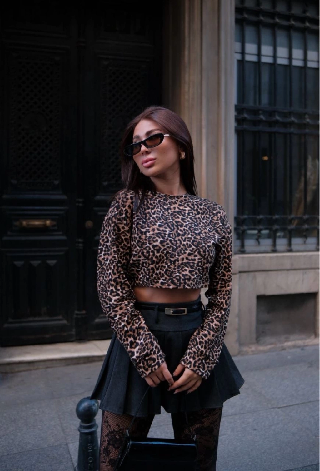 Leopar desenli Uzun Kollu Crop - Leopar