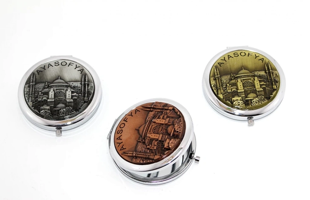 METAL AYASOFYA KABARTMALI EL AYNASIÜrün Özellikleri7x7 cm boyutlarındaki metal Ayasofya yöresel kabartmalı el aynası, zarif ve şık tasarımıyla hem işlevsel hem de dekoratif bir aksesuardır. Ayasofya'nın tarihi ve kültürel dokusunu yansıtan kabartmalı desen, aynaya estetik bir hava katmaktadır. Metal malzeme sayesinde dayanıklı ve uzun ömürlüdür. Hem günlük kullanım hem de dekoratif amaçla mükemmel bir seçenektir.Paket İçeriği1 adet metal Ayasofya kabartmalı el aynası (tekli fiyat)