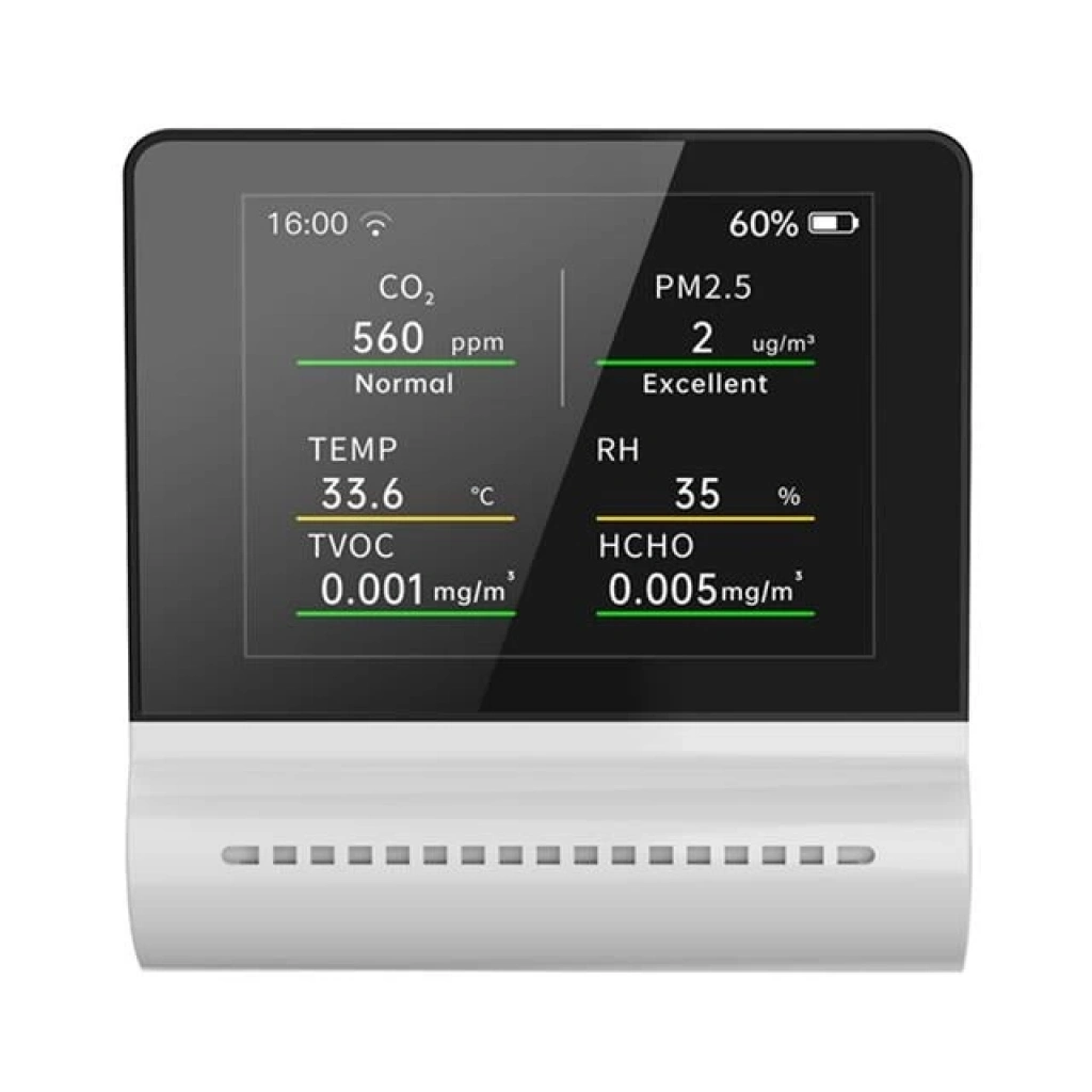 Çalışma prensibi: Mie saçılma prensibi ile donatılmıştır ve havadaki toz parçacıklarını algılayabilir. Turn on the device for 180S to test. The range is 0~1000ug/m³, and the accuracy is 1ug/m³.