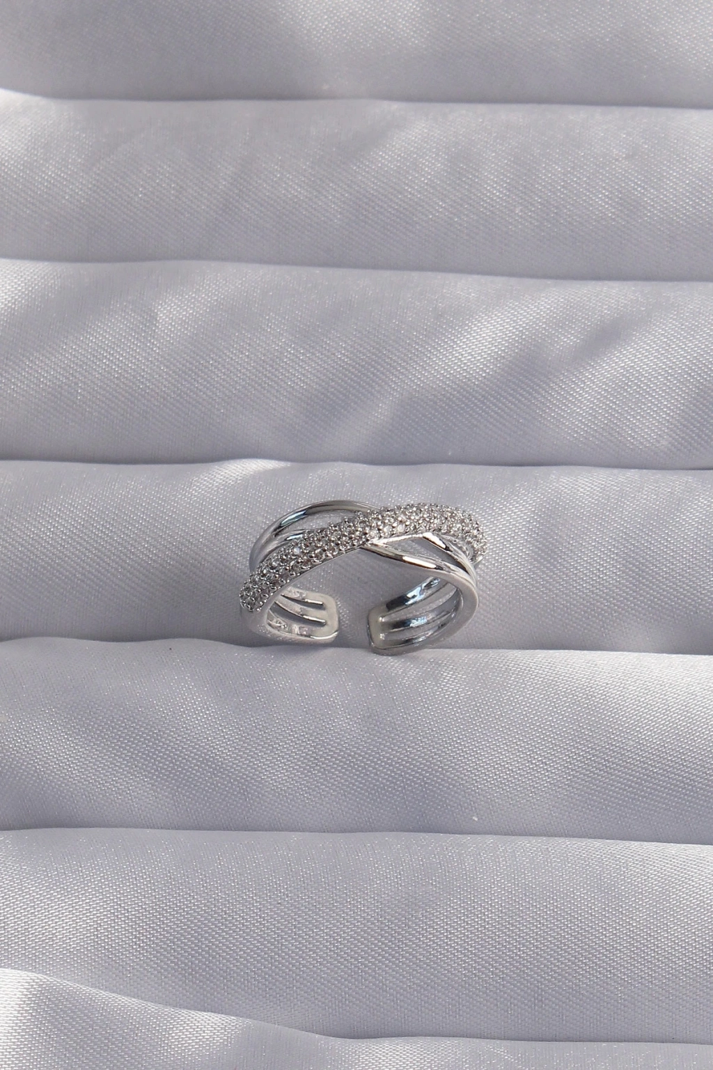 ÇOK SATAN Pirinç Ayarlamalı Gümüş Renk Zirkon Taşlı Çapraz Görünüm Yüzük