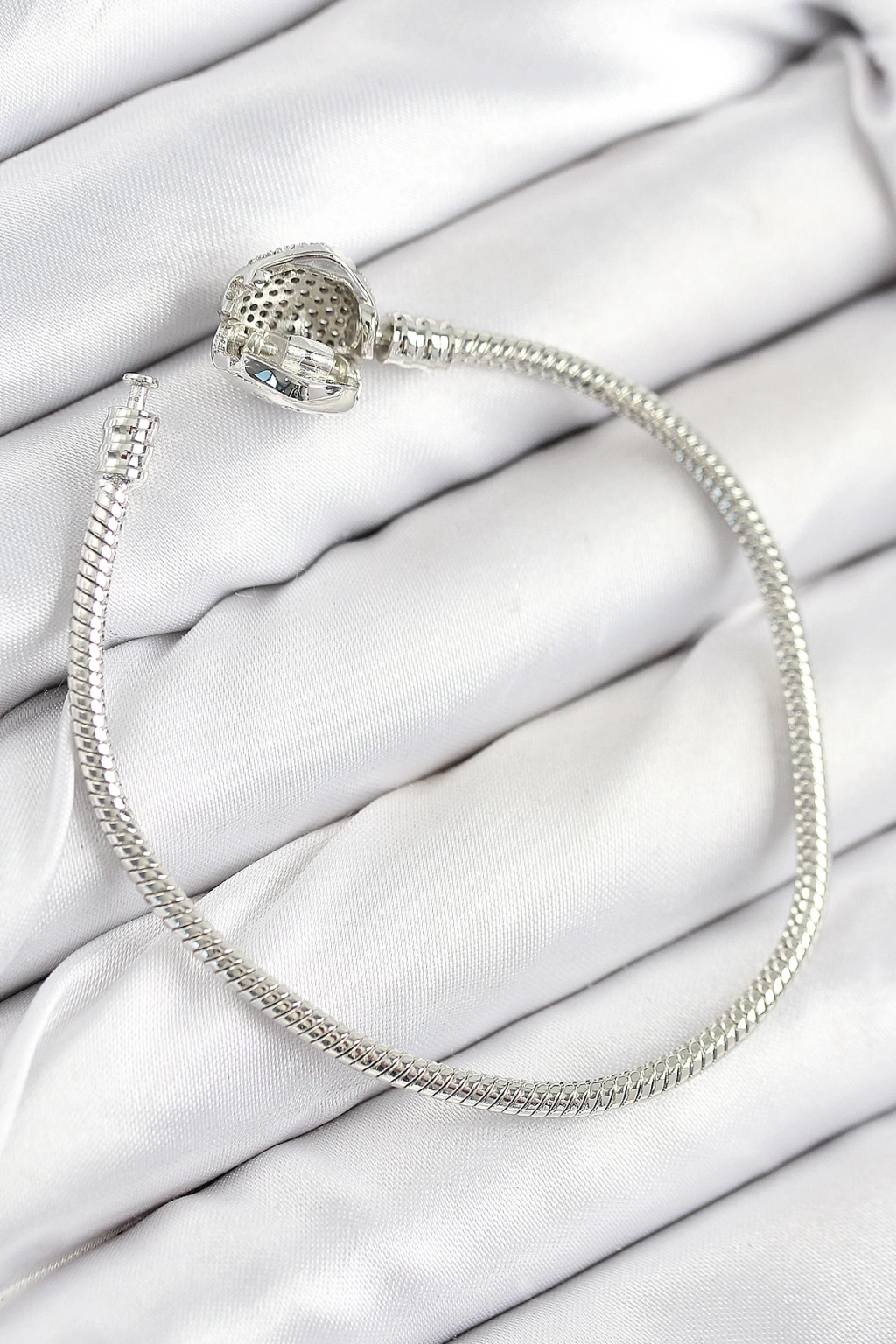 ÇOK SATAN Pirinç Charm Zirkon Taşlı Kalp Model Gümüş Renk Kadın Bileklik