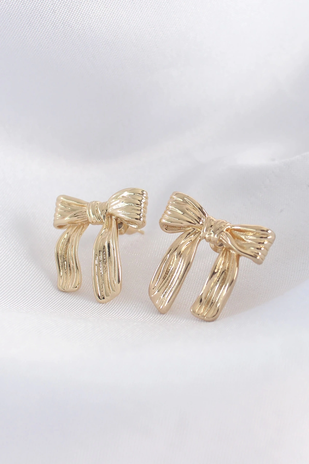 ÇOK SATAN Pirinç Gold Renk Çizgi Detay Fiyonk Küpe