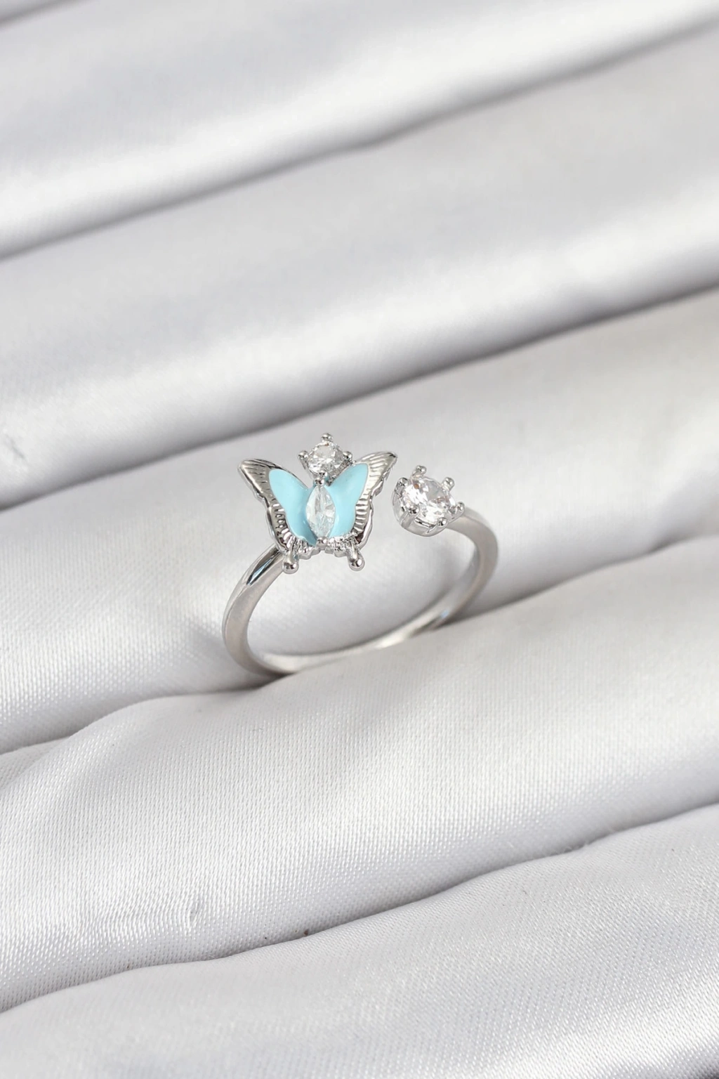 ÇOK SATAN Pirinç Gümüş Renk Kelebek Model Kadın Yüzük