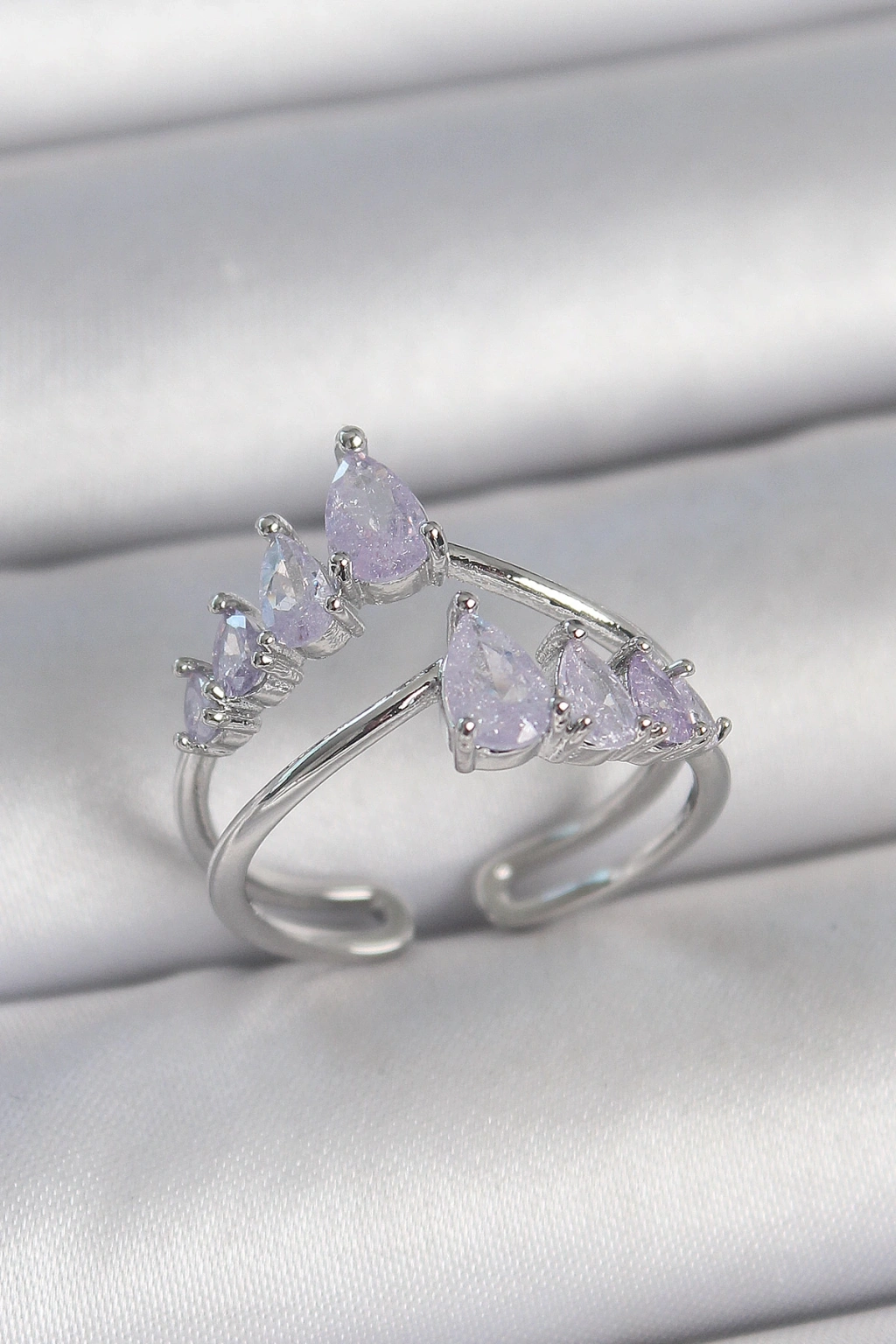 ÇOK SATAN Pirinç Gümüş Renk Mor Damla Zirkon Taşlı Taç Model Kadın Yüzük