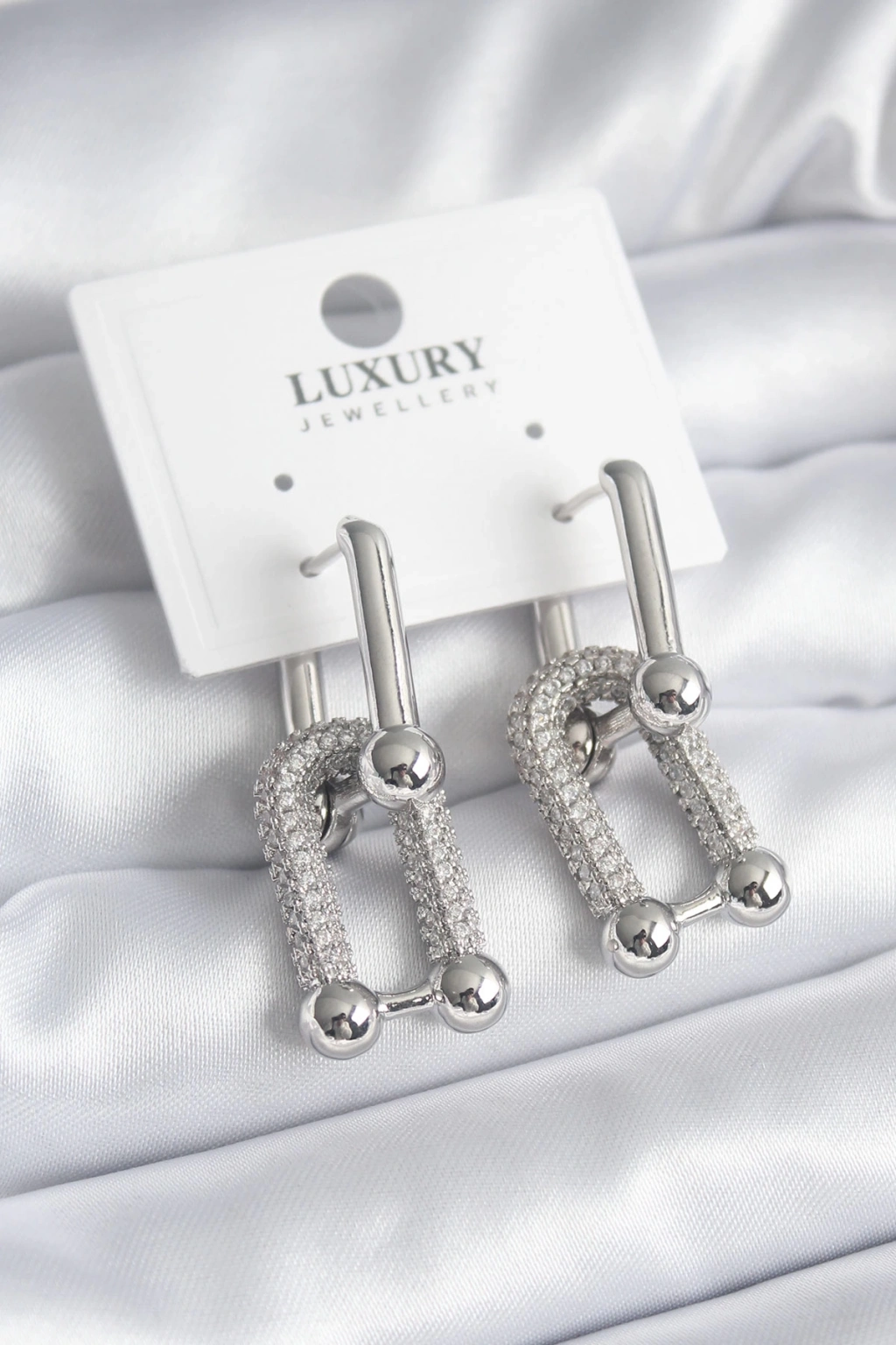 ÇOK SATAN Pirinç Gümüş Renk Zirkon Taşlı Model VIP Seri Kadın Küpe