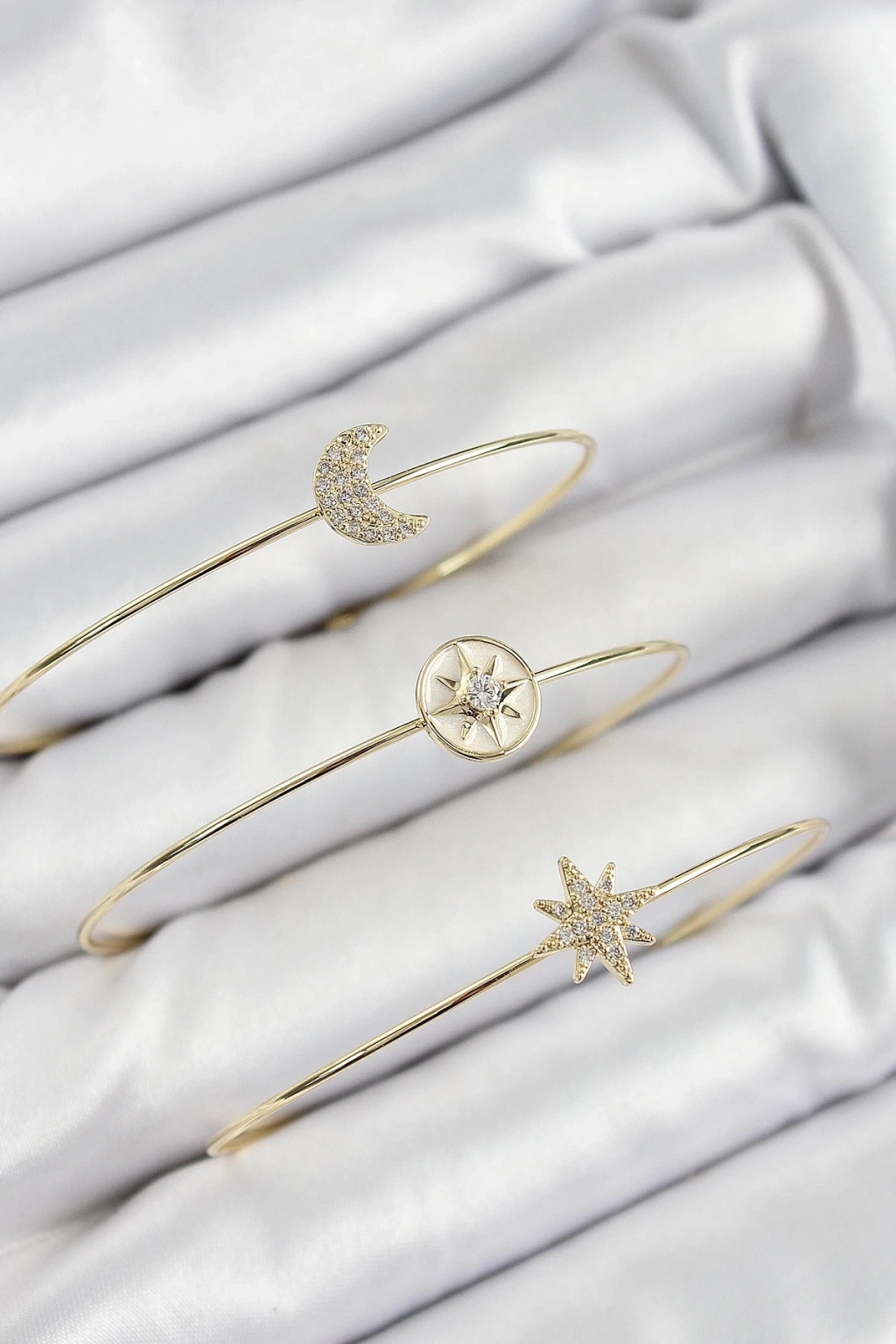 ÇOK SATAN Pirinç Zirkon Taşlı Ay Ve Kutup Yıldızı Model Gold Renk Vip 3'lü Kadın Bileklik