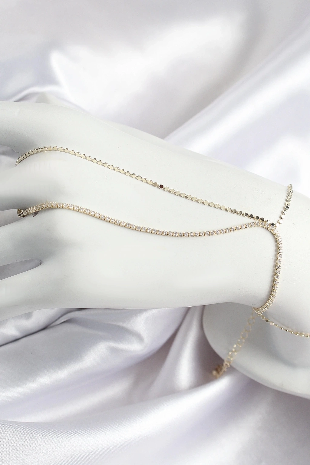 • Pirinç Zirkon Taşlı Ezme Zincir Model Gold Renk Kadın Şahmeran