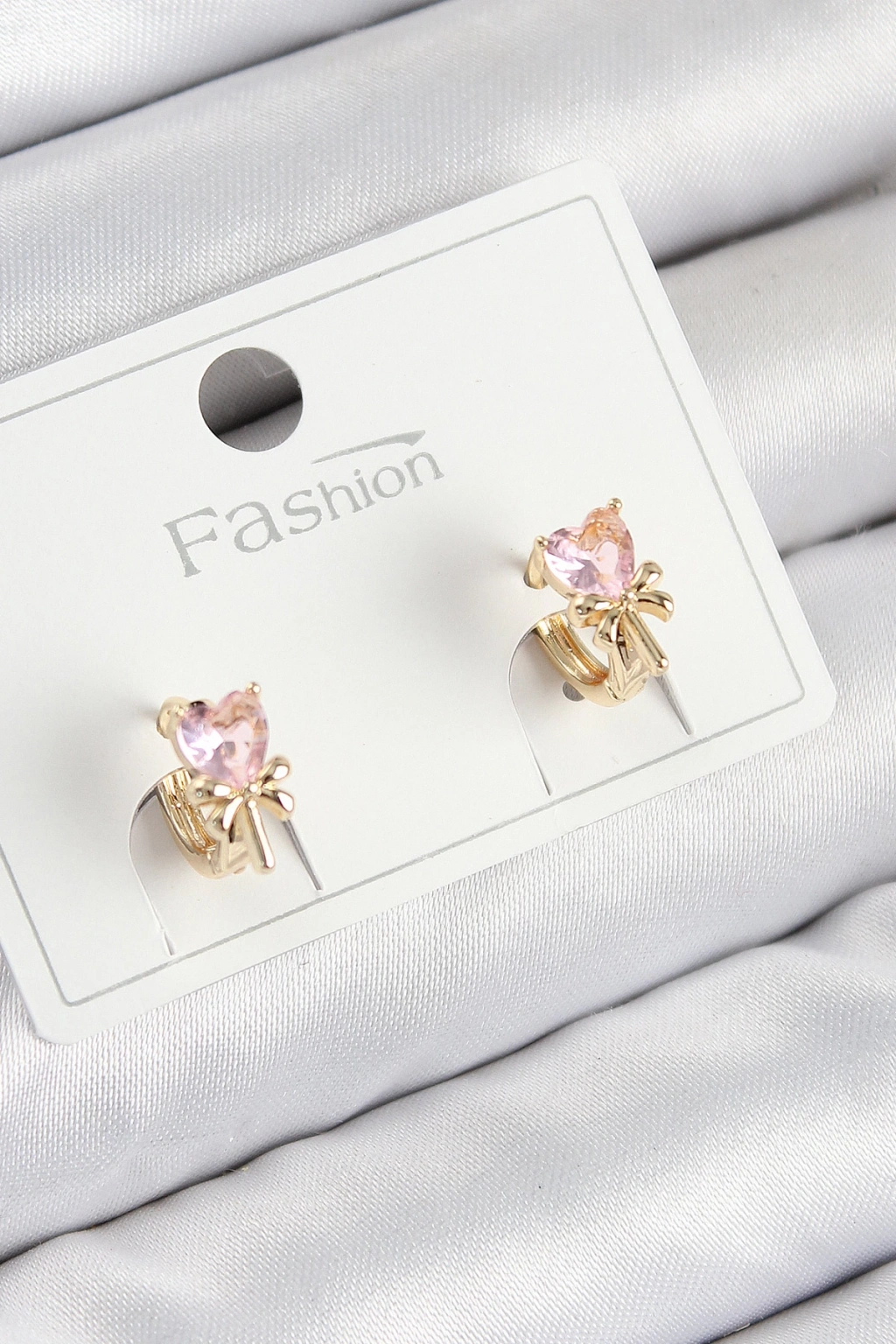 ÇOK SATAN Pirinç Zirkon Taşlı Fiyonklu Kalp Model Gold Renk Çocuk Küpe