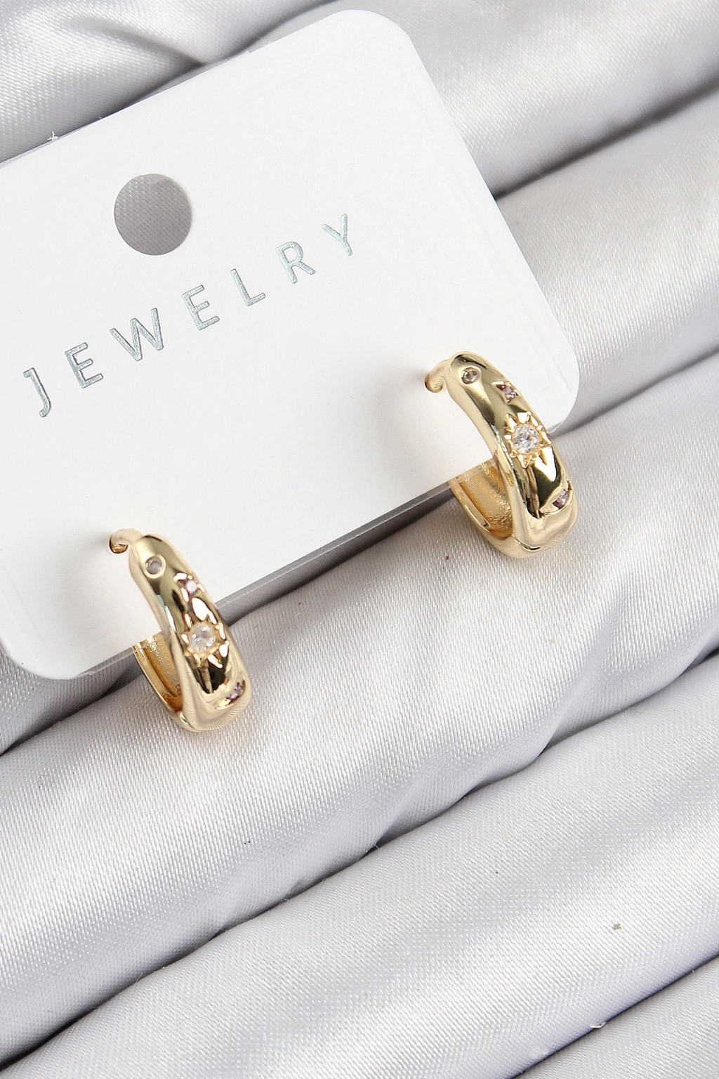 ÇOK SATAN Pirinç Zirkon Taşlı Halka Model Gold Renk Kadın Küpe