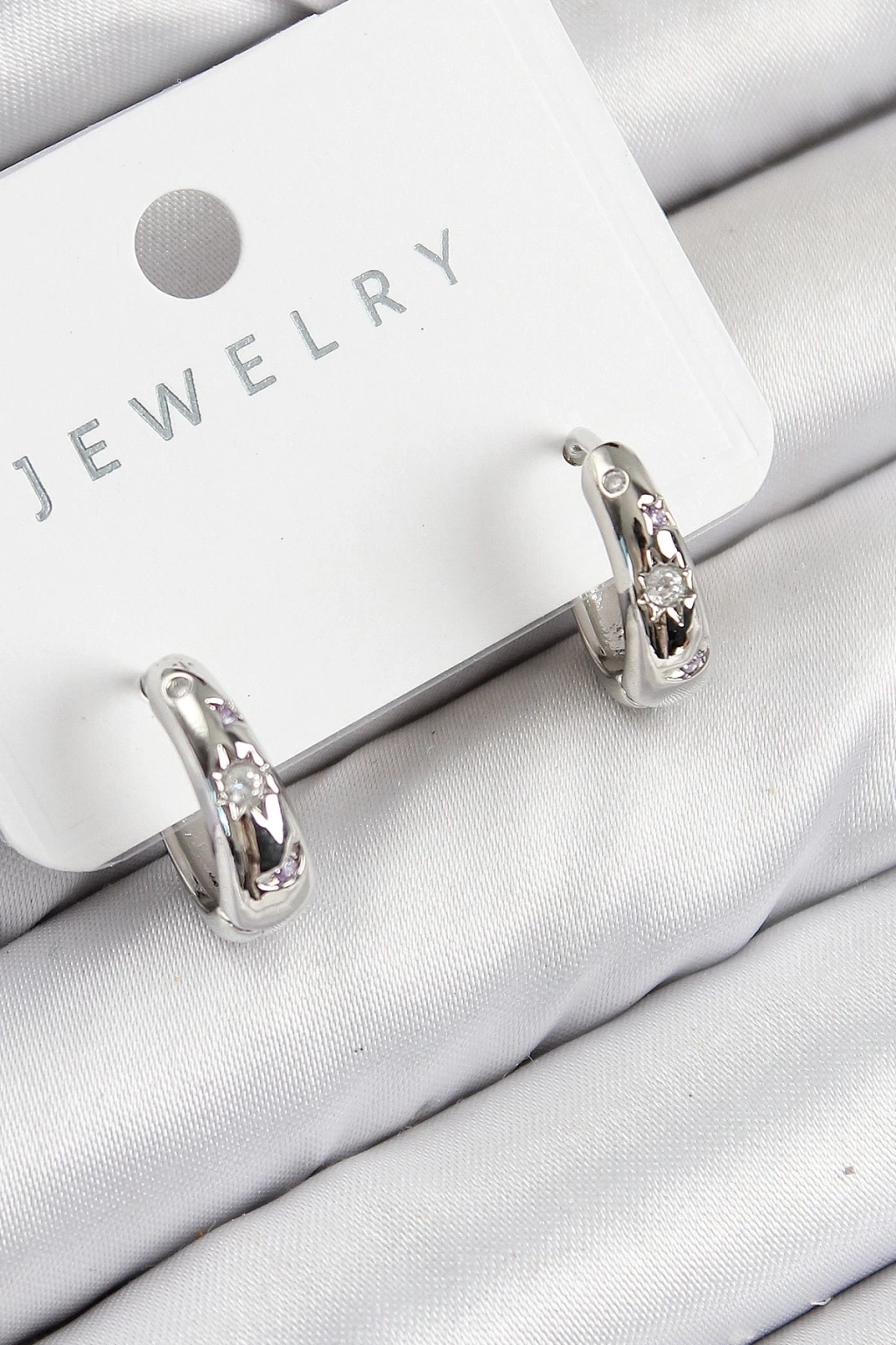 ÇOK SATAN Pirinç Zirkon Taşlı Halka Model Gümüş Renk Kadın Küpe
