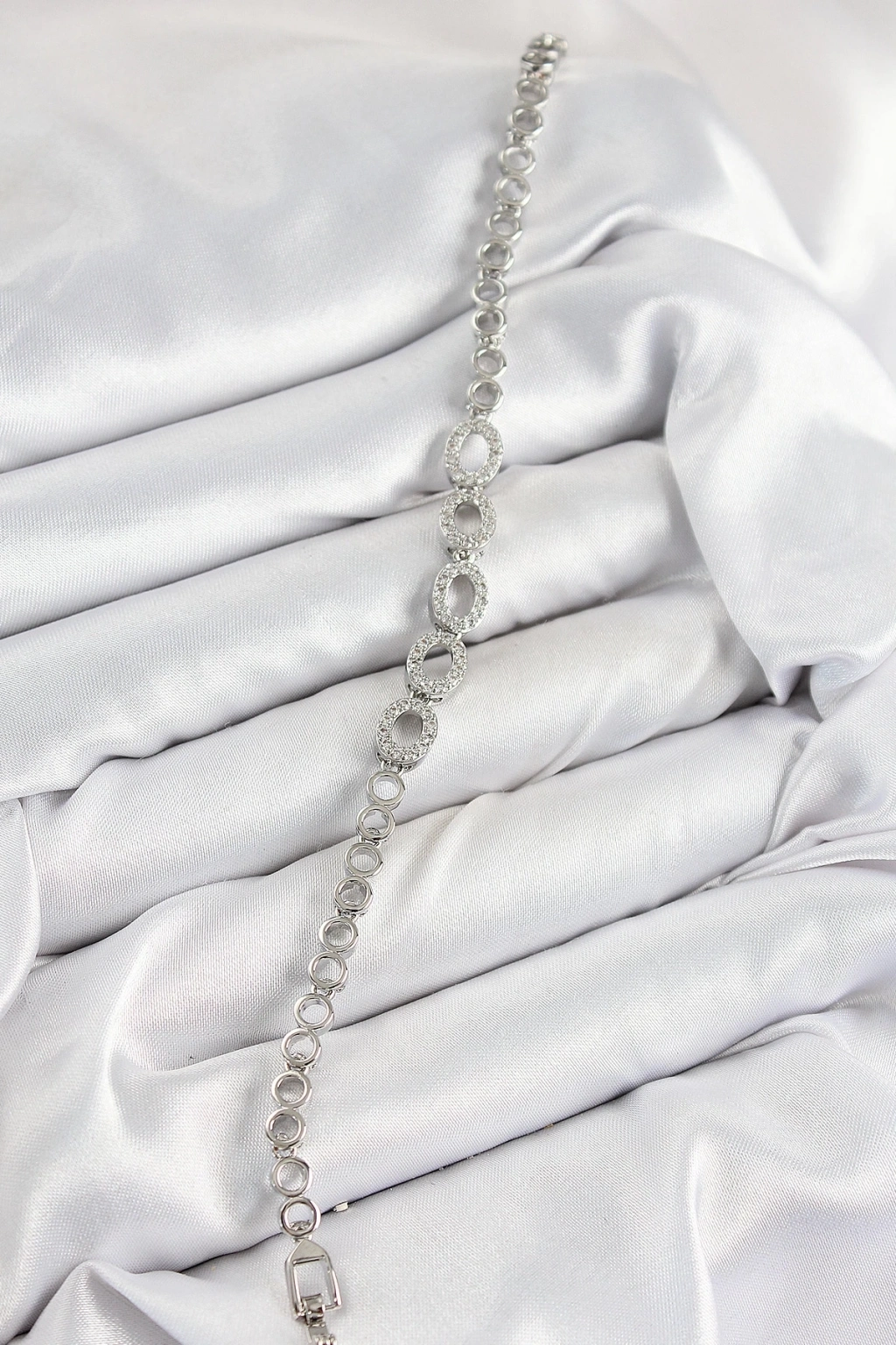 ÇOK SATAN Pirinç Zirkon Taşlı Oval Model Gümüş Renk Kadın Bileklik