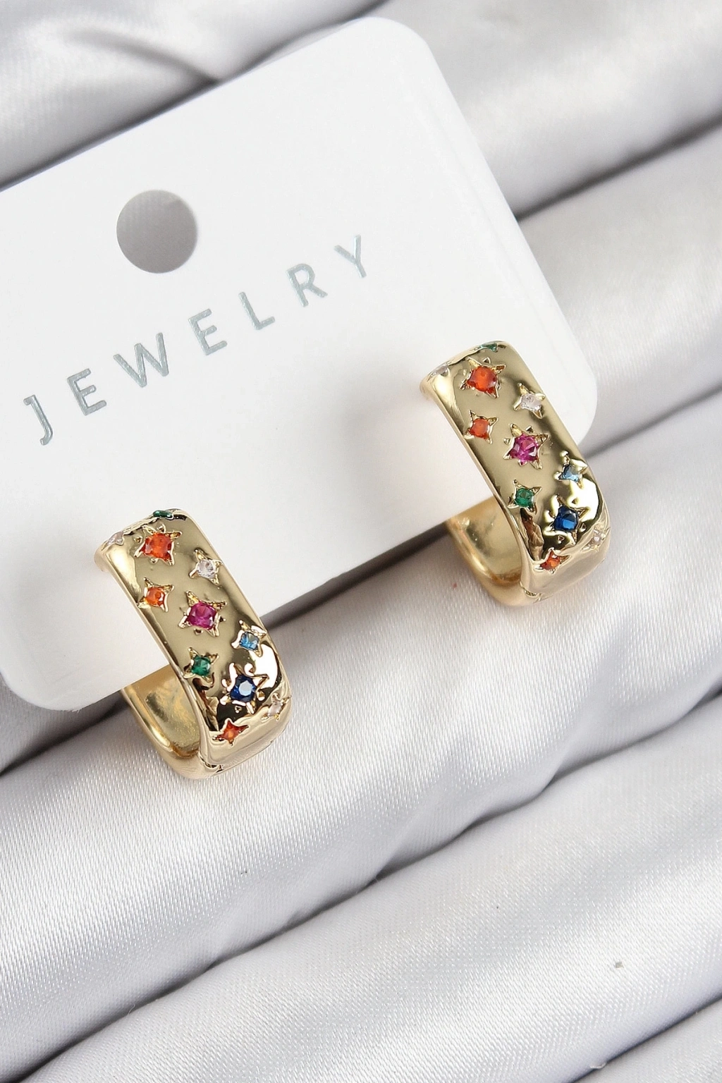 ÇOK SATAN Pirinç Zirkon Taşlı Yıldız Desen Model Gold Renk Kadın Küpe