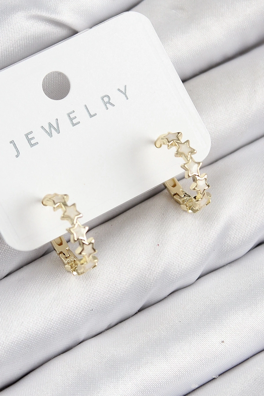 • Pirinç Zirkon Taşlı Yıldız Model Gold Renk Kadın Küpe