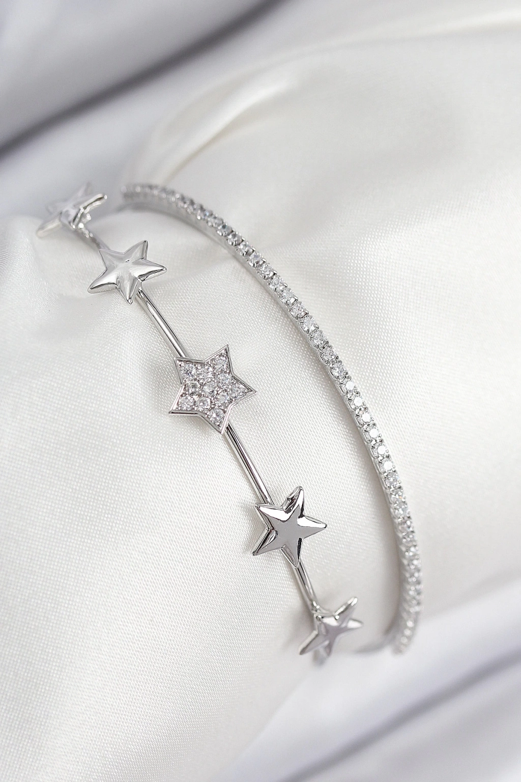 ÇOK SATAN Pirinç Zirkon Taşlı Yıldız Model Gümüş Renk Kadın Bileklik
