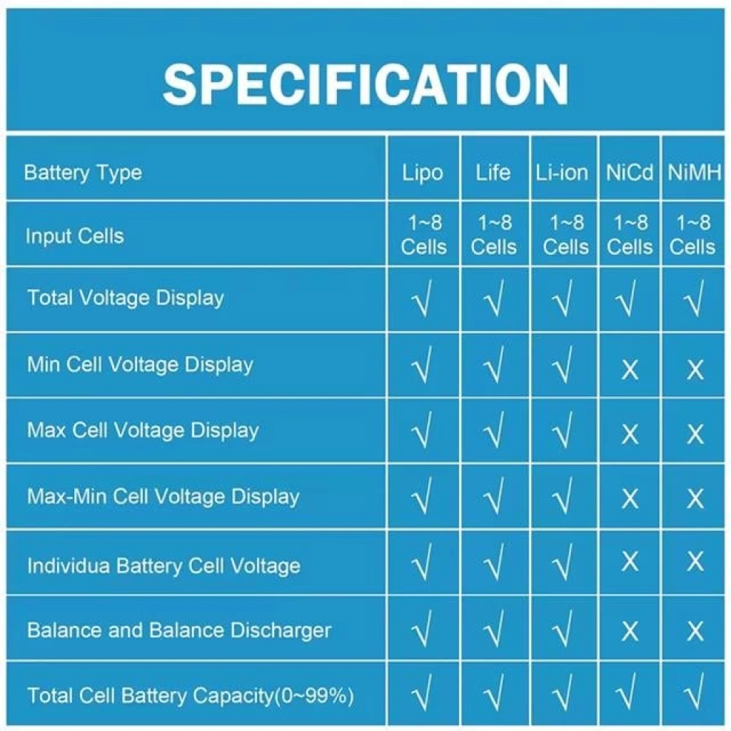 PowerMaster PM-26959, RC modelciler ve elektronik hobi severler için tasarlanmış profesyonel bir pil test cihazıdır. LiPo, LiFe, Li-ion, NiCd ve NiMH pil tiplerini destekleyen bu cihaz, 1-8S aralığındaki pilleri test edebilme özelliğine sahiptir. Servo test modu ve çeşitli frekans seçenekleri ile kapsamlı test imkanı sunar.