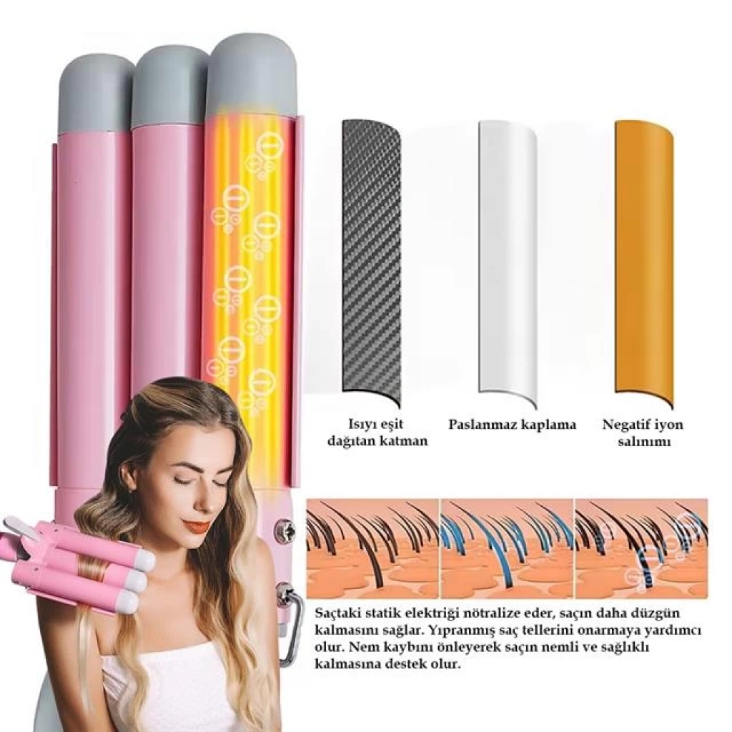 ÇOK SATAN Premio T-0042 Triple Su Dalgası Profesyonel Saç Şekillendirici Maşası