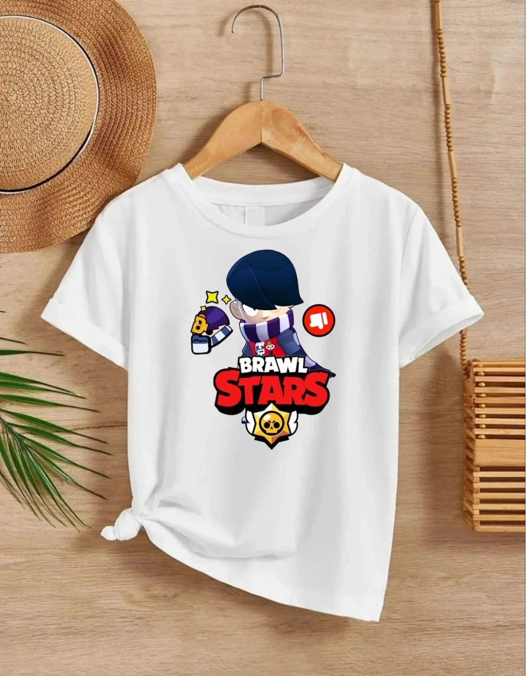 Bisiklet Yaka Kısa Kol Baskılı Çocuk T-Shirt - Beyaz