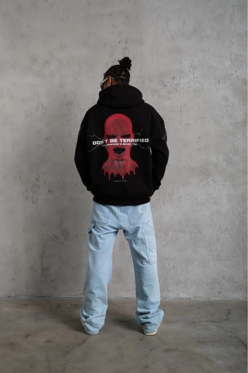Maske Baskılı Kapüşonlu Sweat - Siyah