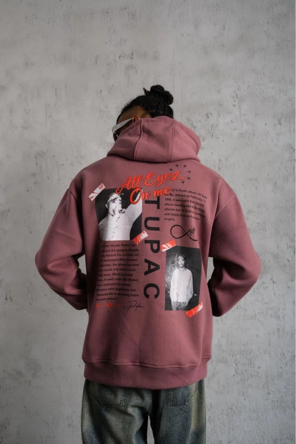 Ön Arka Baskılı Kapşonlu Sweat - Gül Kurusu