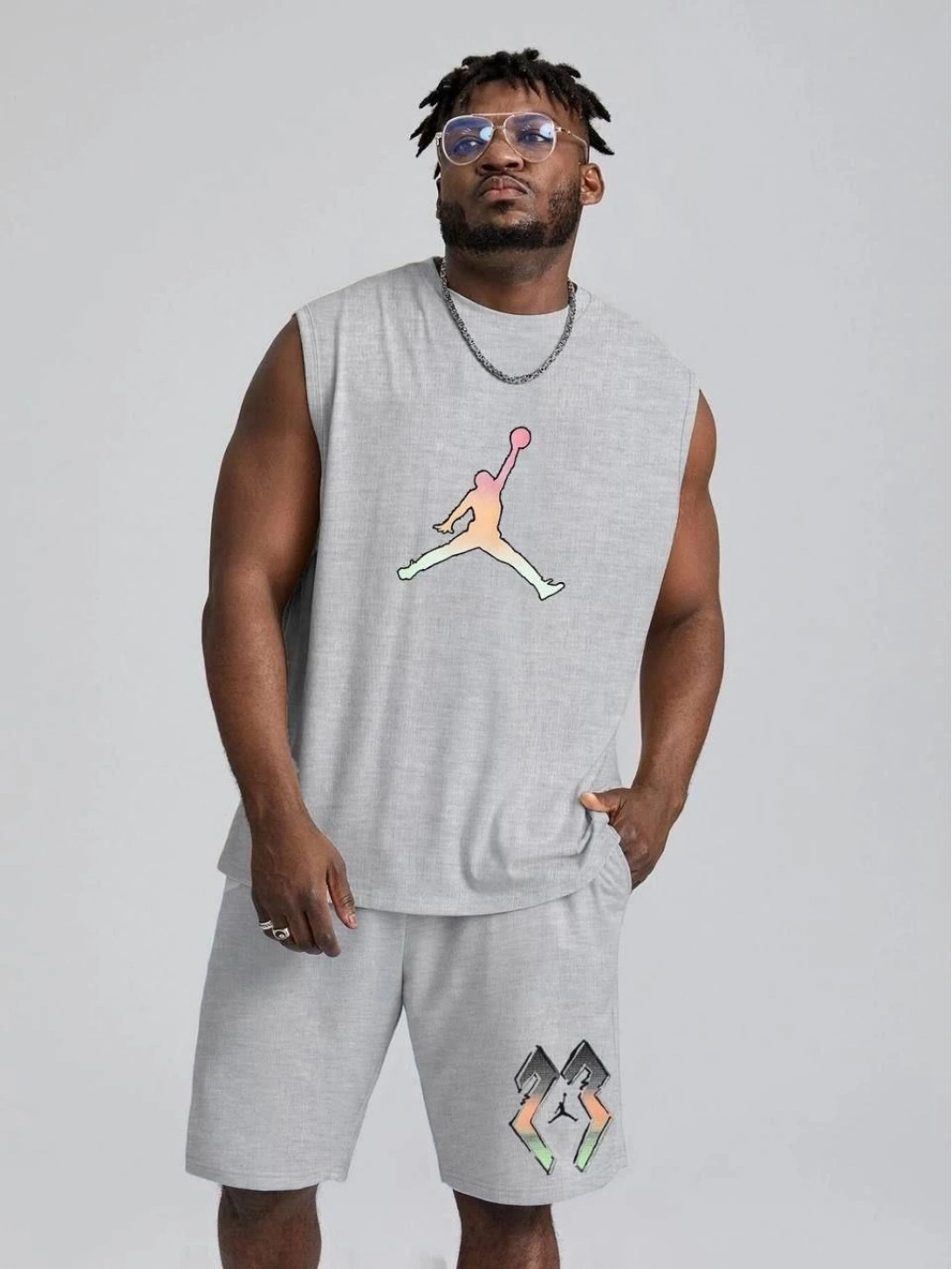 Sırt Baskılı Sıfır Kol İkili Şort Takım - Gri