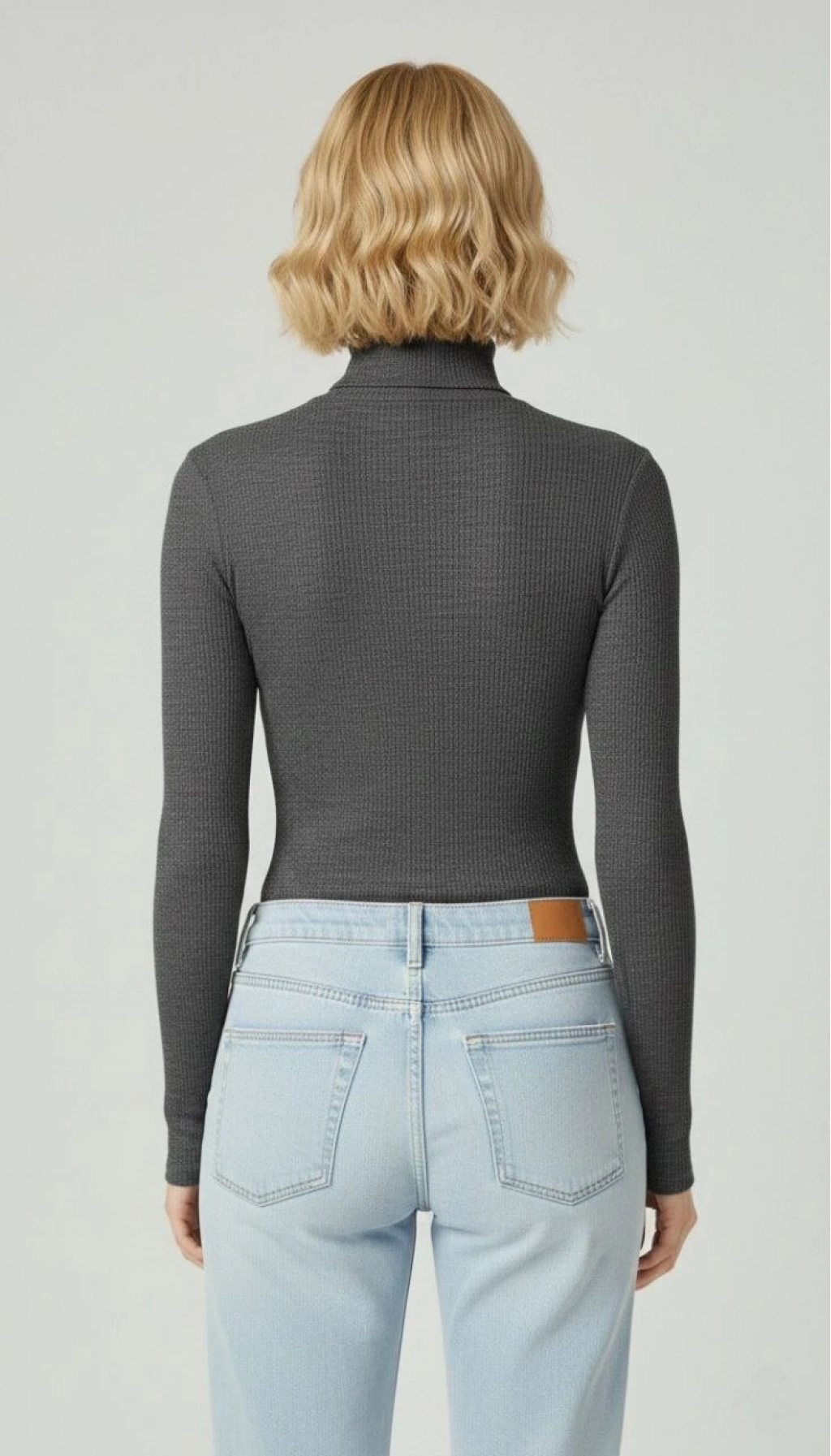 Tam Boğazlı Fitilli Likrali Kaşkorse Badi İnce Uzun Kollu Kazak - Antrasit