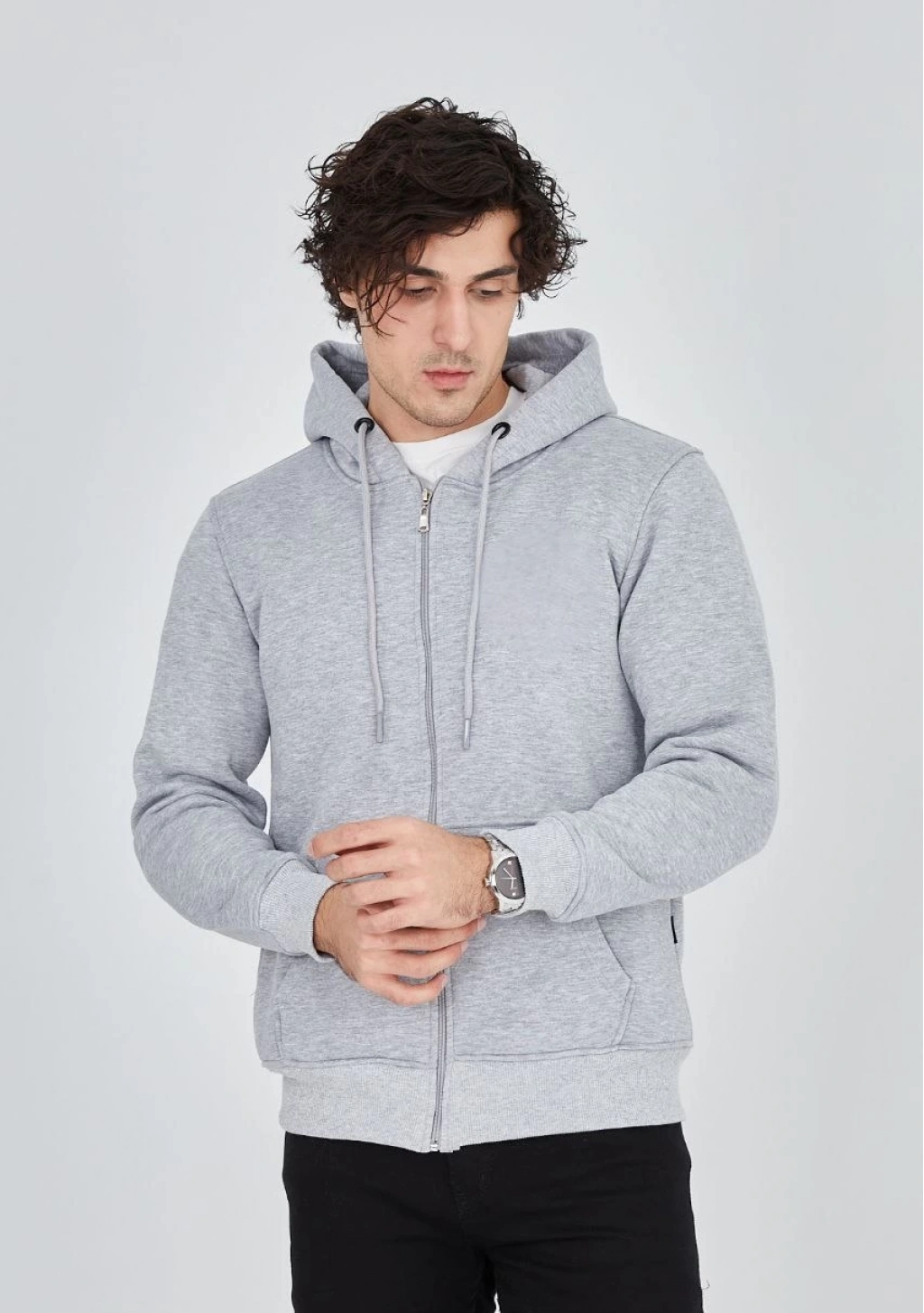 Tam Fermuarlı Kapşonlu  SweatShirt - Gri