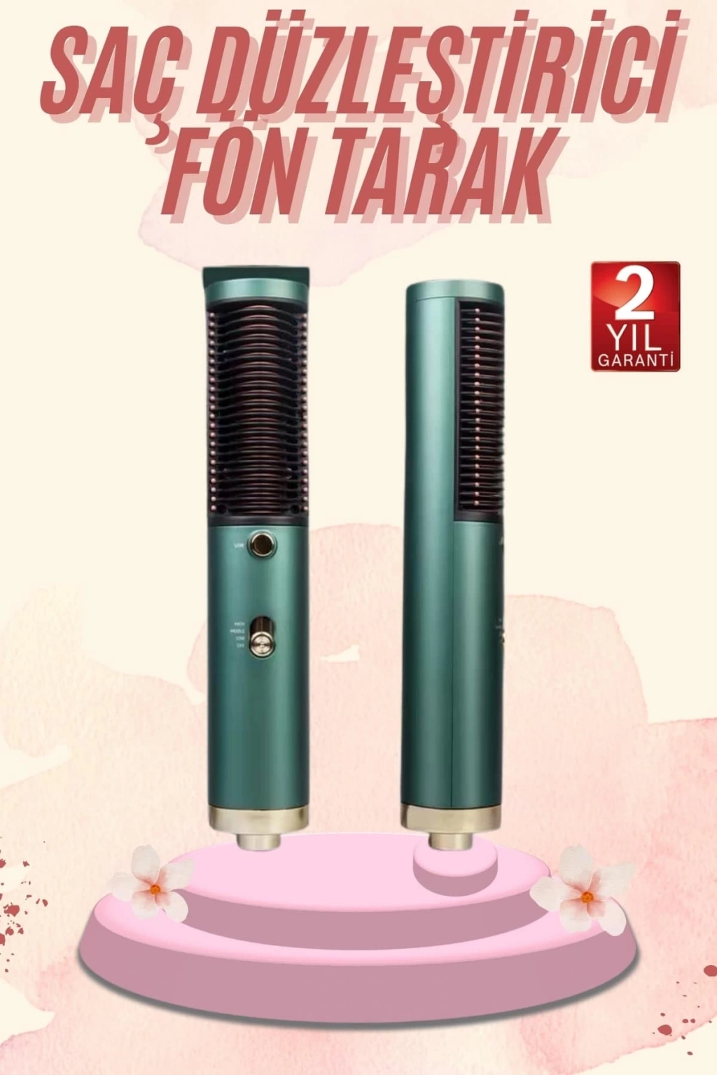 İyonik Sıcak Hava Saç Fırçası, saç şekillendirme deneyimini hem kolay hem de profesyonel hale getiren yenilikçi bir tasarımla karşınıza çıkıyor. Fön makinesi, düzleştirici ve saç tarağının işlevlerini bir arada sunan bu çok yönlü cihaz, her saç tipine uygun olarak geliştirilmiştir. Negatif iyon teknolojisi sayesinde saçın doğal nemini korurken, elektriklenme ve kabarma gibi problemleri minimize eder; böylece saçlarınız hem daha sağlıklı görünür hem de ipeksi bir pürüzsüzlük kazanır.Gelişmiş PTC hızlı ısınma teknolojisiyle donatılan bu fırça, yalnızca 30 saniyede maksimum sıcaklığa ulaşarak zaman tasarrufu sağlar. 140 F ila 400 F arasında ayarlanabilen üç farklı sıcaklık seviyesi, ince telli saçlardan kalın ve kıvırcık saçlara kadar her türlü saç yapısına özel bakım sunar. Düşük, orta ve yüksek ısı ayarları ile saç tipinize en uygun sıcaklık düzeyini seçebilir, aşırı ısıya bağlı zararları önleyebilirsiniz.Kullanıcı dostu ergonomik yapısı ve 360 dönebilen güç kablosu ile tek elle rahat kullanım sağlar. Kablosu 2 metre uzunluğunda olup, hareket özgürlüğünü kısıtlamadan rahat bir şekillendirme süreci sunar. Ayrıca, yanıklara karşı geliştirilmiş güvenlik detayları ve kompakt tasarımı ile hem evde hem de seyahatlerde güvenle kullanılabilir.800W gücündeki motoru, sessiz ve etkili çalışarak saçlarınıza hem şekil verir hem de bakım yapar. 3 farklı hız ısı kombinasyonuyla esnek kullanım imkânı sunan bu cihaz, sadece stil değil, aynı zamanda saç sağlığına da özen gösterenler için ideal bir seçimdir. Şık, pratik ve güçlü bu saç düzleştirme fırçası ile her gün kuaförden çıkmış gibi hissetmeye hazır olun.
