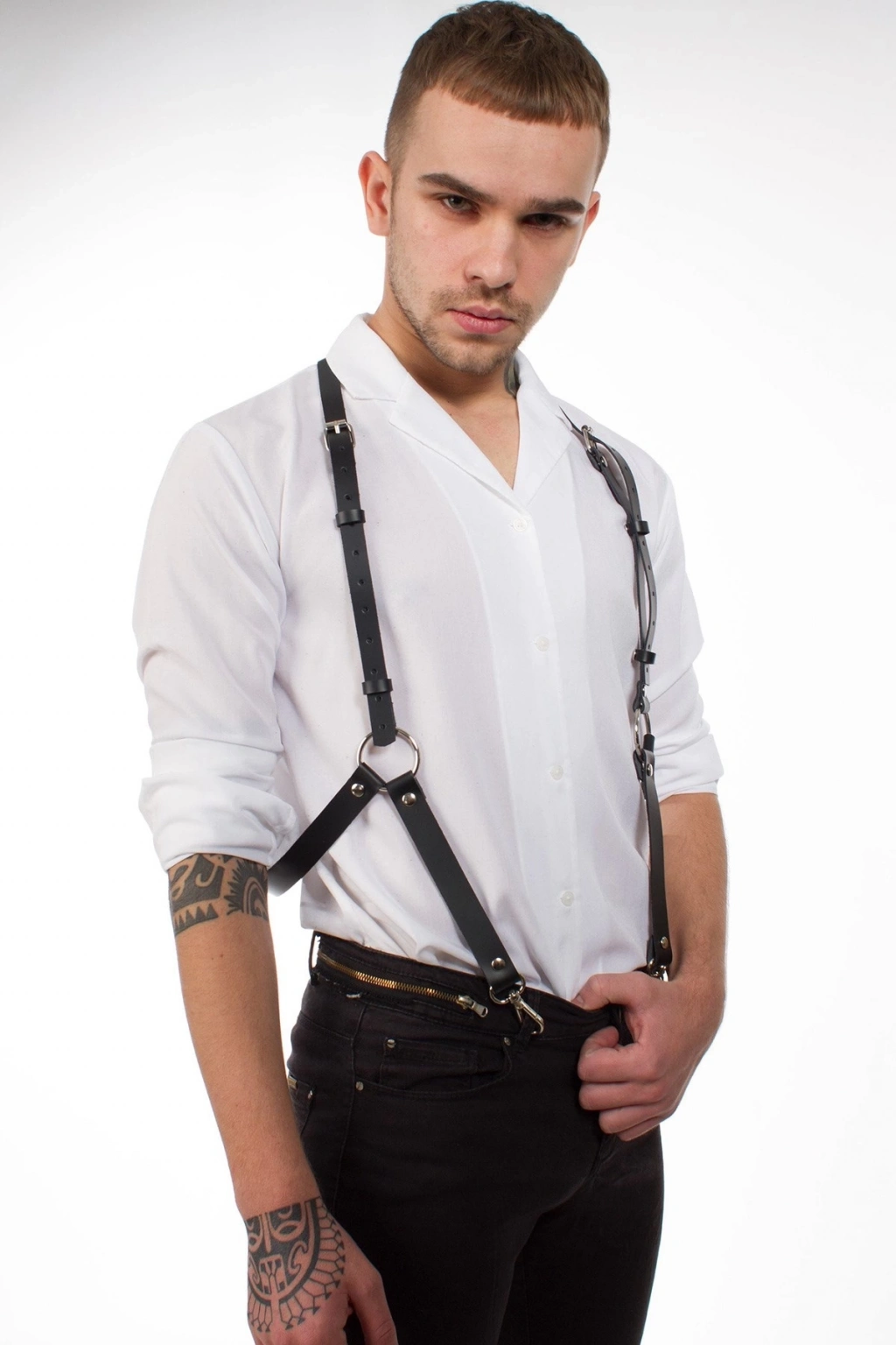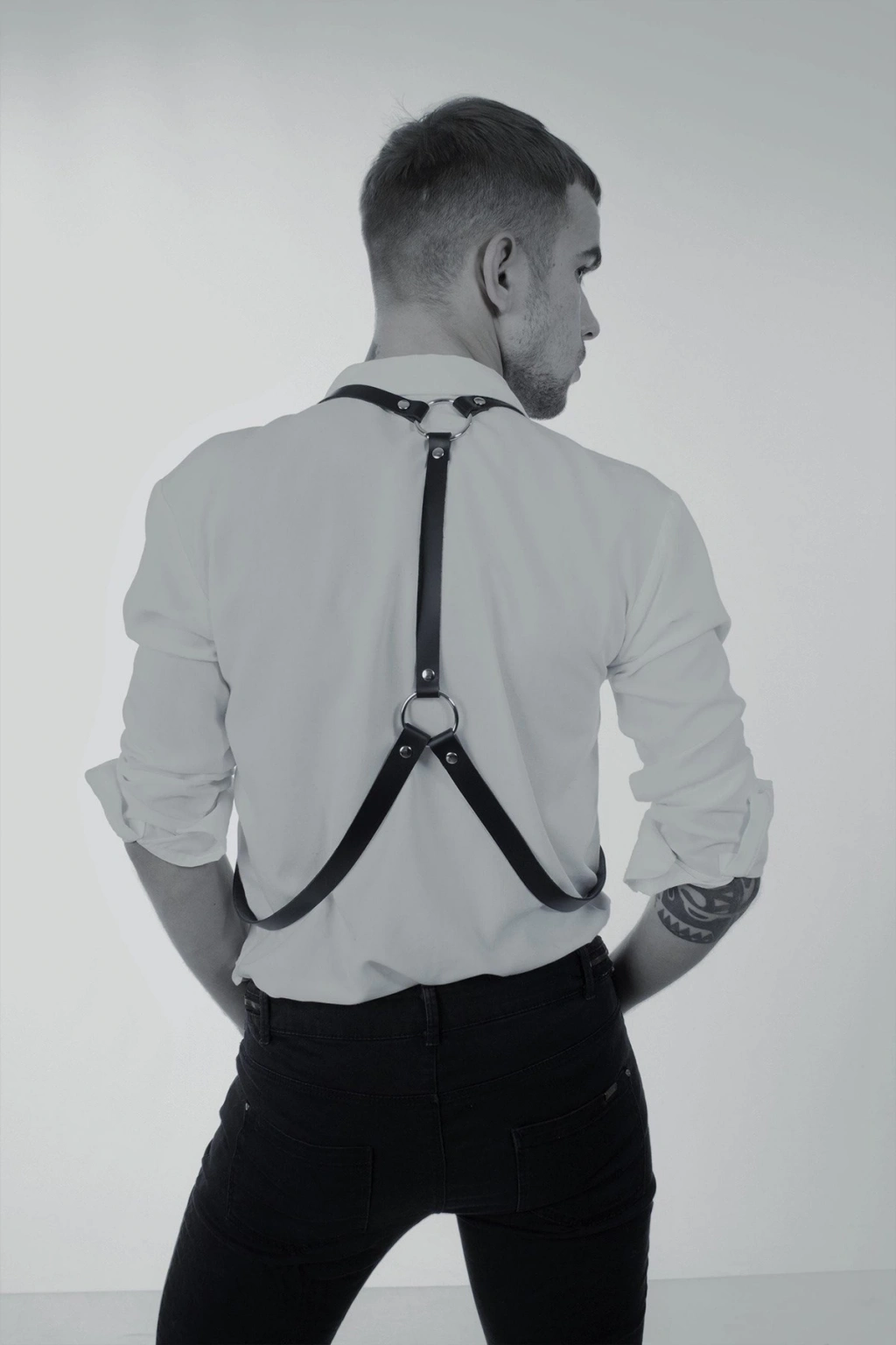 Siyah Erkek Deri Pantolon Askısı Fantazi Harness 1022