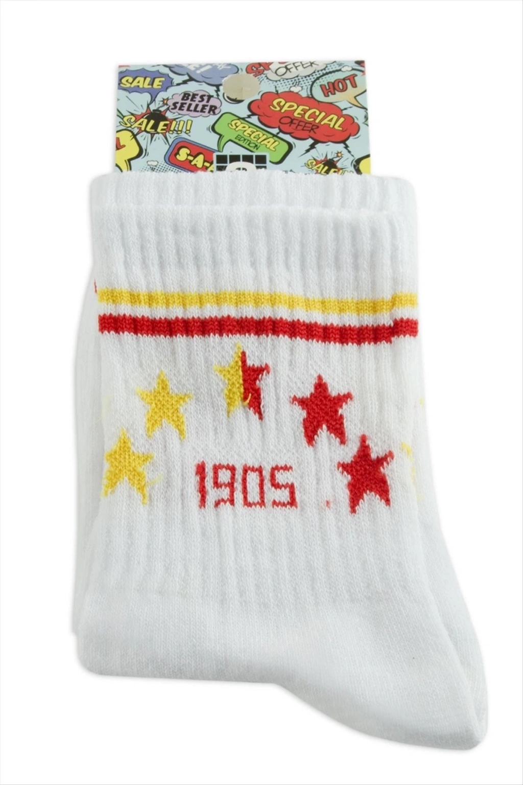Çorap; Ürün malzemesi polyester ve üzeri desenlidir. Boyu 28 cm ve genişliği 8 cmdir. Ürün numarası 37-41 arasındadır.