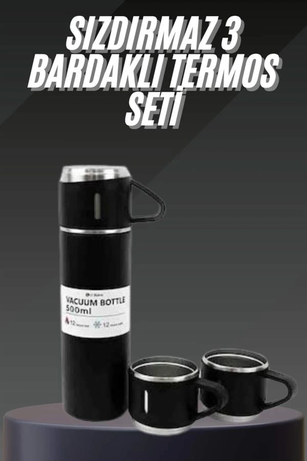 ÇOK SATAN Termos Seti Paslanmaz Çelik 3 Bardaklı Vakumlu Termos Set 500 Ml 12 Saate Kadar Isı Koruma