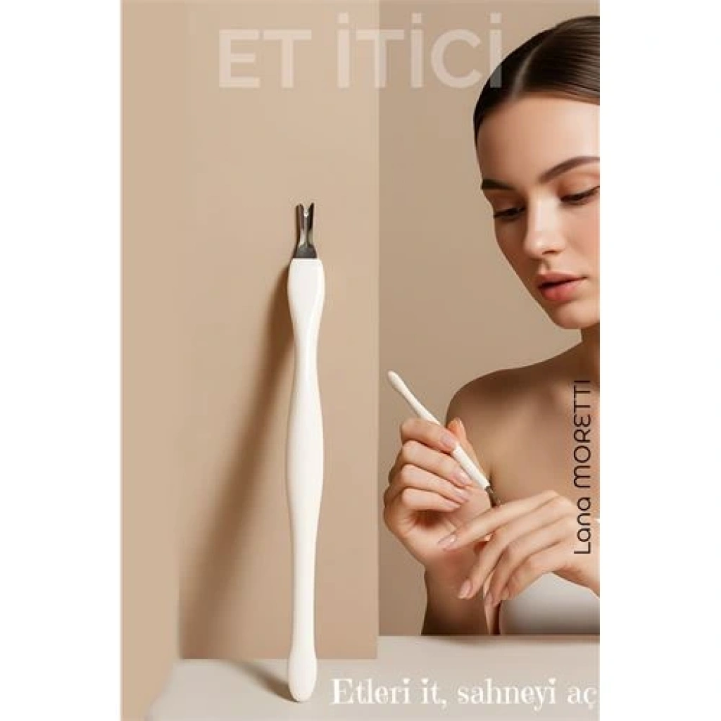 Pembe-beyaz tasarımıyla hem şık hem hijyenik. Bir ucu et itici, diğer ucu tırnak kenarı temizleyici. Elinde rahat durur, manikürünü profesyonel seviyeye taşır. Evde bakımın yıldızı, çantada taşınabilir güzellik yardımcısı.