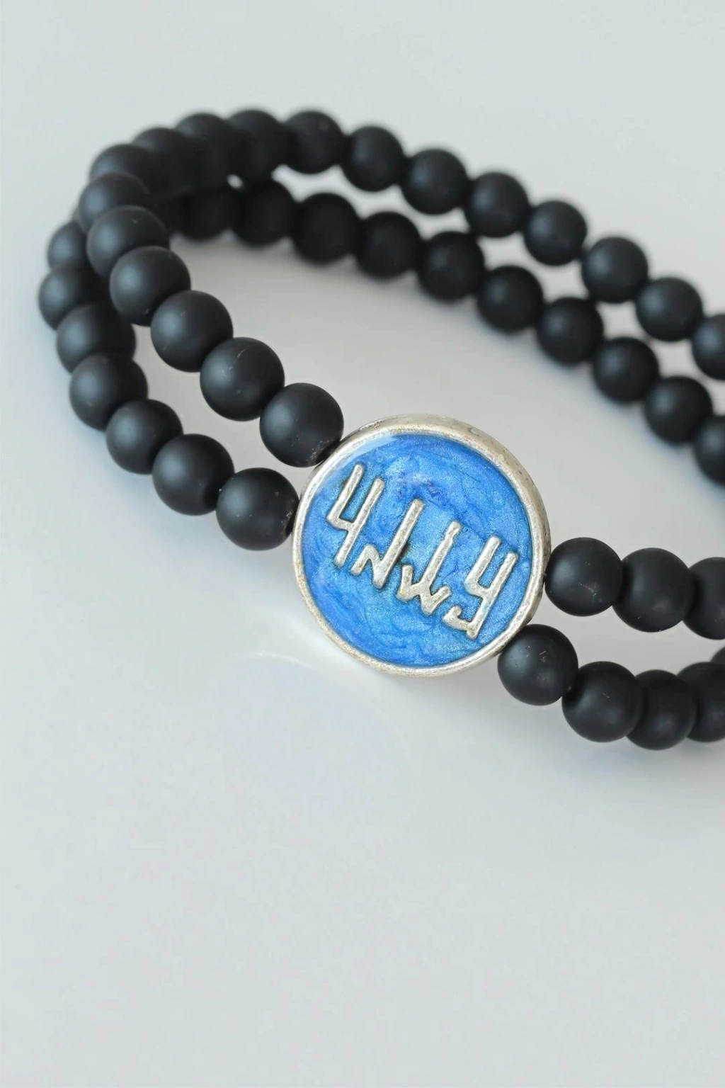 ÇOK SATAN Vav Figürlü Lacivert Metal Aksesuarlı Çift Sıra Oniks Doğal Taş Erkek Bileklik