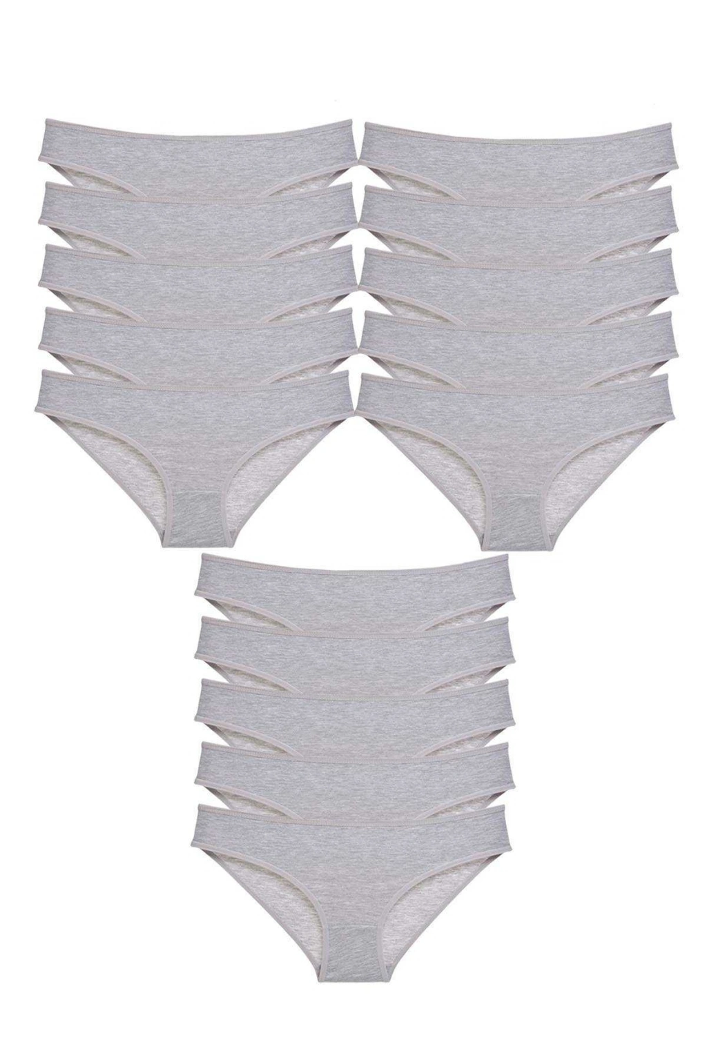15 adet Süper Eko Set Likralı Kadın Slip Külot Gri