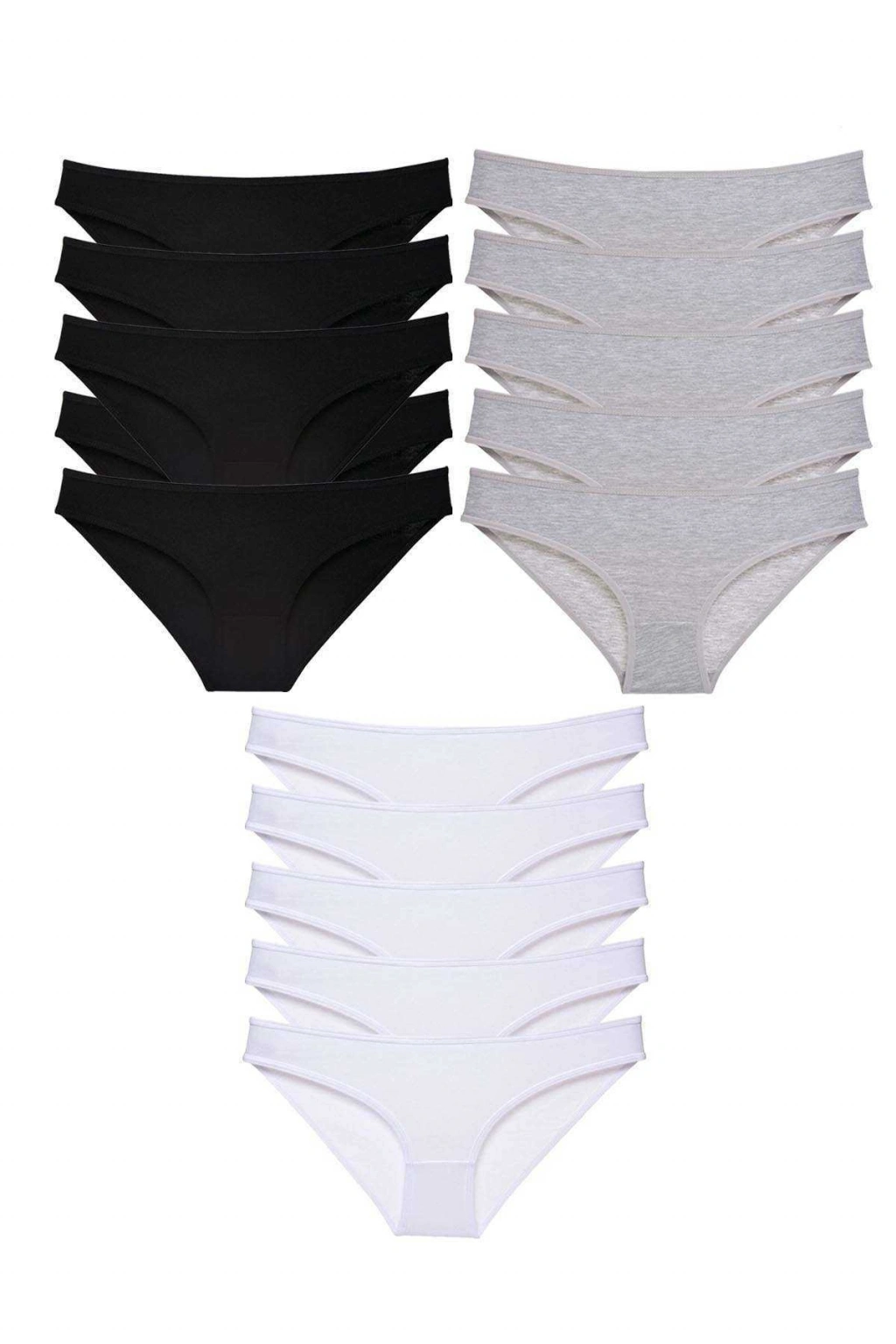 15 adet Süper Eko Set Likralı Kadın Slip Külot Siyah Gri Beyaz