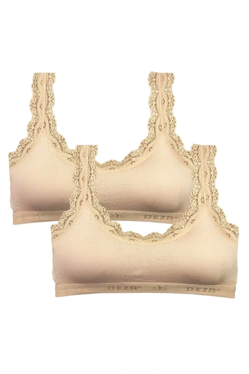 2 Adet Dantel Nakış İşlemeli Pedli Bambu Kadın Büstiyer Ten