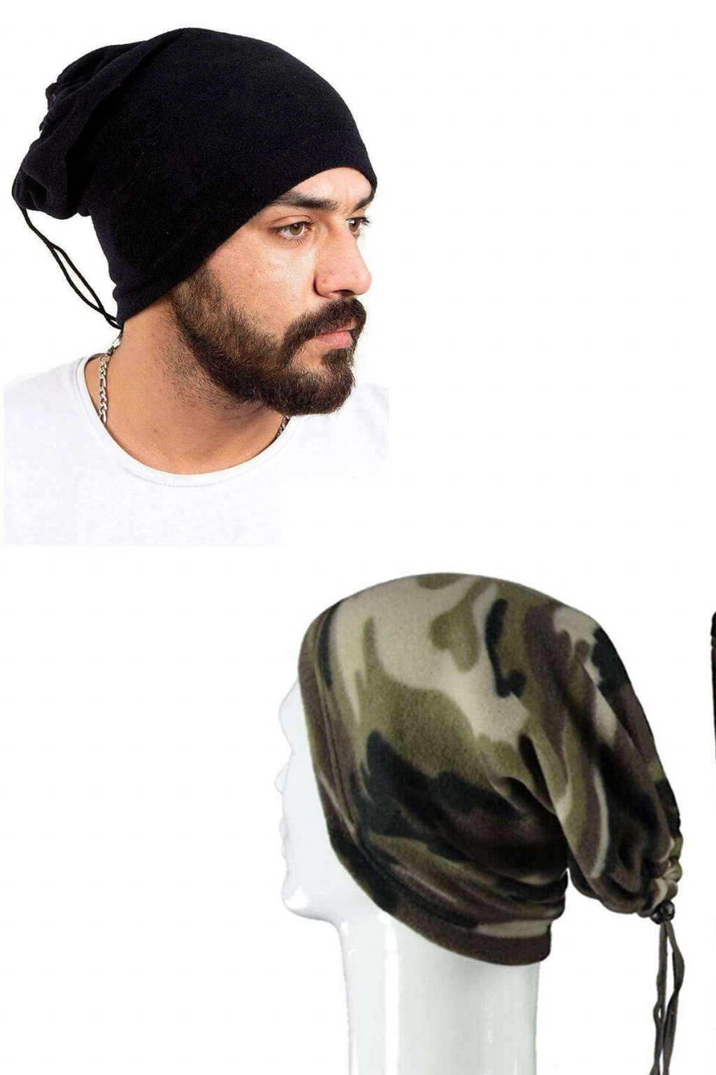2 Adet Polar İpli Bere ve Boyunluk Siyah Kamuflaj