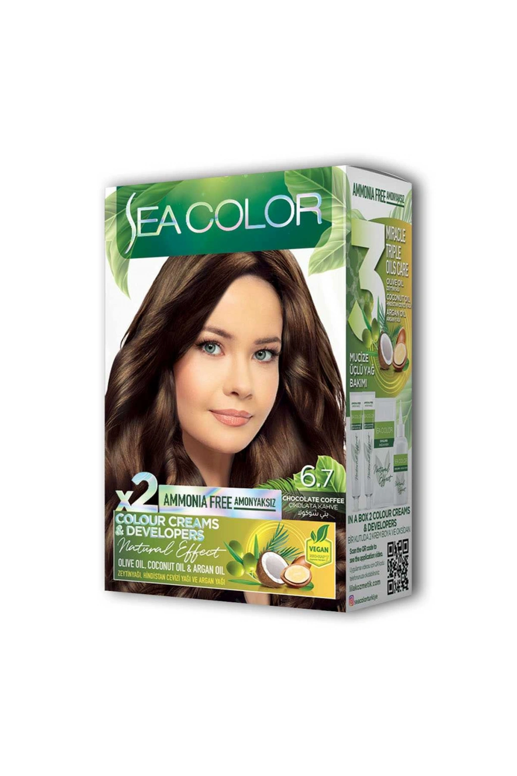 Sea Color 2 tüp Krem Saç Boyası Seti Çikolata Kahve No:6.7