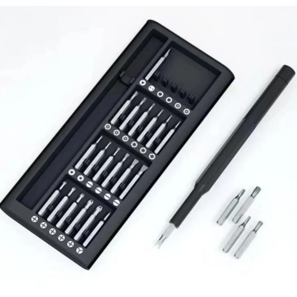 25 PARÇA TORNAVİDA SETİ1.24-in-1 tornavida seti: bu Set 24 farklı tornavida ucu içerir, bu da çok yönlü ve çeşitli görevler için uygundur. Cep telefonları, gözlükler, kameralar, saatler ve diğer ev eşyalarını onarmak için özelleştirilebilir.2. Geniş uygulama yelpazesi: kapsamlı tornavida uçları seti ile, bu set hem profesyonel hem de ev kullanım için mükemmeldir. Farklı onarım ve bakım görevlerini kolaylıkla halledebilmenizi sağlayan çok çeşitli vida tipleri ve boyutları kapsar.3. Uygun depolama: set, tornavida uçları için güvenli bir depolama sağlayan bir geçmeli kilitli plastik kutu ile birlikte gelir. Kutunun kompakt boyutu, araçlarınızın organize edilmesini ve erişilebilir olmasını sağlayarak taşımayı ve saklamayı kolaylaştırır.4. Dayanıklı ve güvenilir: tornavida uçları, dayanıklılık ve uzun ömürlü performans sağlayan yüksek kaliteli malzemelerden yapılmıştır. Sık kullanıma dayanacak şekilde tasarlanmıştır ve verimli vidalama için güvenilir bir tutuş sağlar.5. Ergonomik tasarım: tornavida sapı, rahat ve kaymaz bir tutuş sağlayan, akılda ergonomik prensiplerle tasarlanmıştır. Bu, hassas ve kontrollü kullanım sağlar, onarım sırasında hassas eşyalara kayma veya zarar verme riskini azaltır.