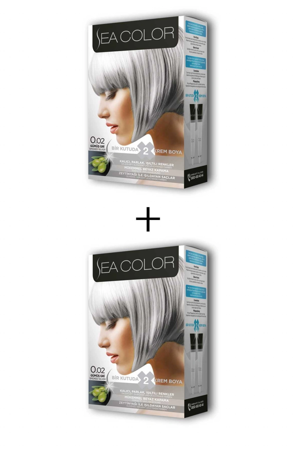 Sea Color 2X2 tüp Krem Saç Boyası Seti Gümüş Gri No:0.02