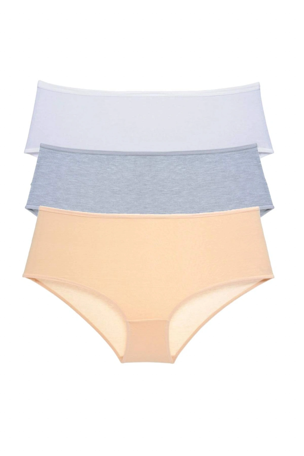 Paket içeriği: 3 Adet Kadın Yüksek Bel Bato Külot Beyaz Gri Ten