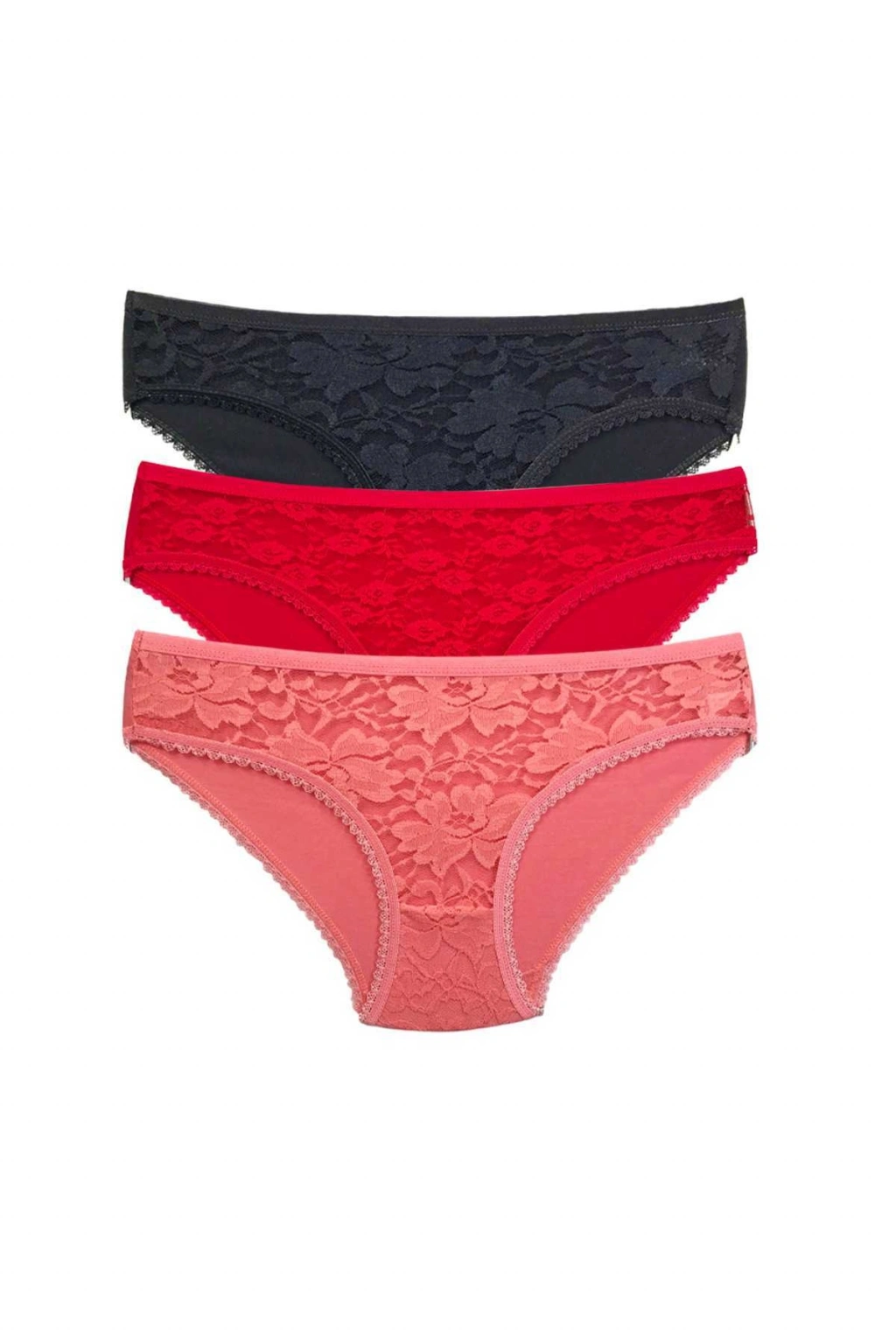 Paket içeriği: 3 Adet Önü Dantelli Transparan Kadın Slip Külot