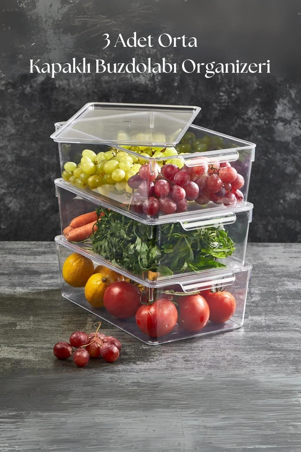 3 Lü Kapaklı Buzdolabı Organizeri & Buzdolabı Düzenleyici 4,5 lt