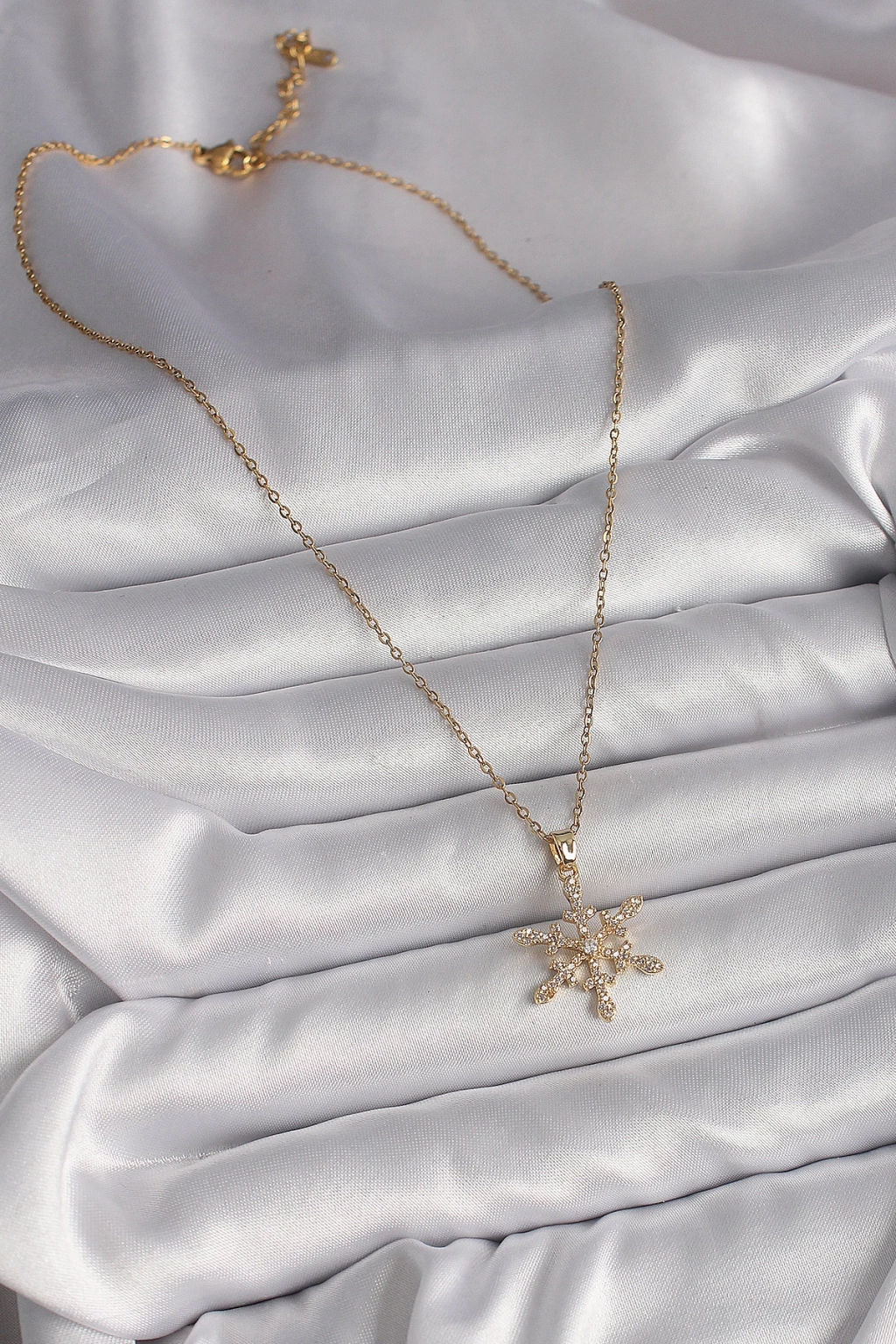 316L Çelik Gold Renk Zincir Zirkon Taşlı Kar Tanesi Model Kadın Kolye