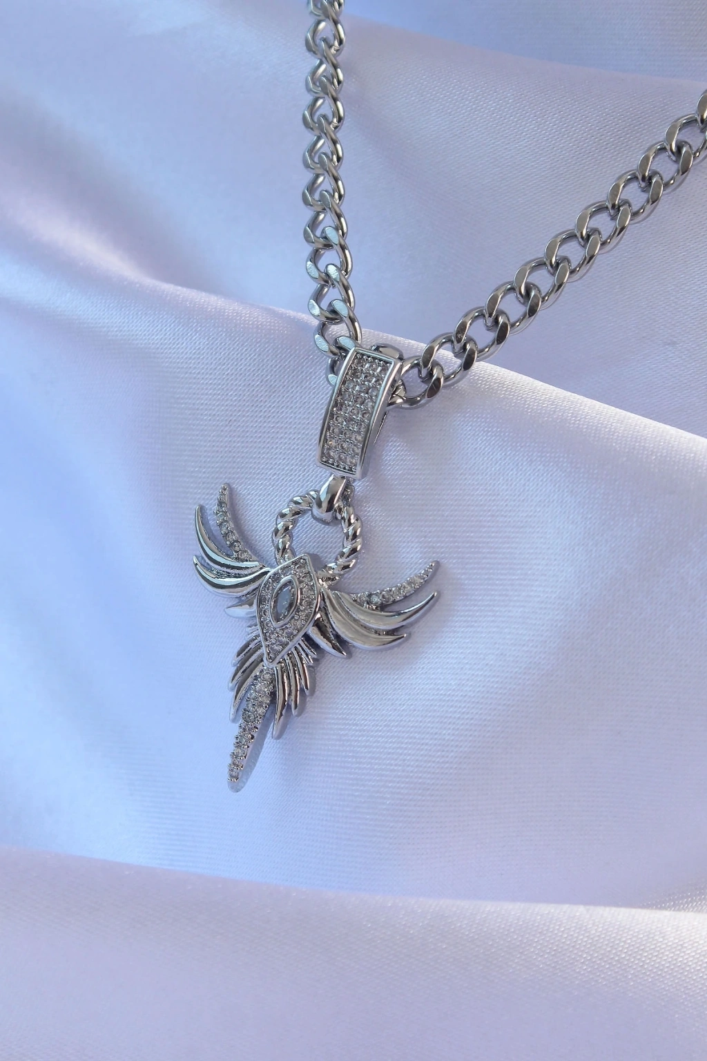 316L Çelik Gümüş Renk Zirkon Taşlı Anka Kuşu Model Kolye