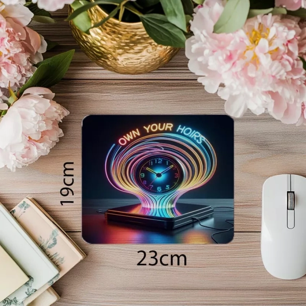 3D Modern Saatli Motivasyon Mouse Pad - 19x23 cm 2 mm Dikdörtgen İthal Baskılı Mouse Pad