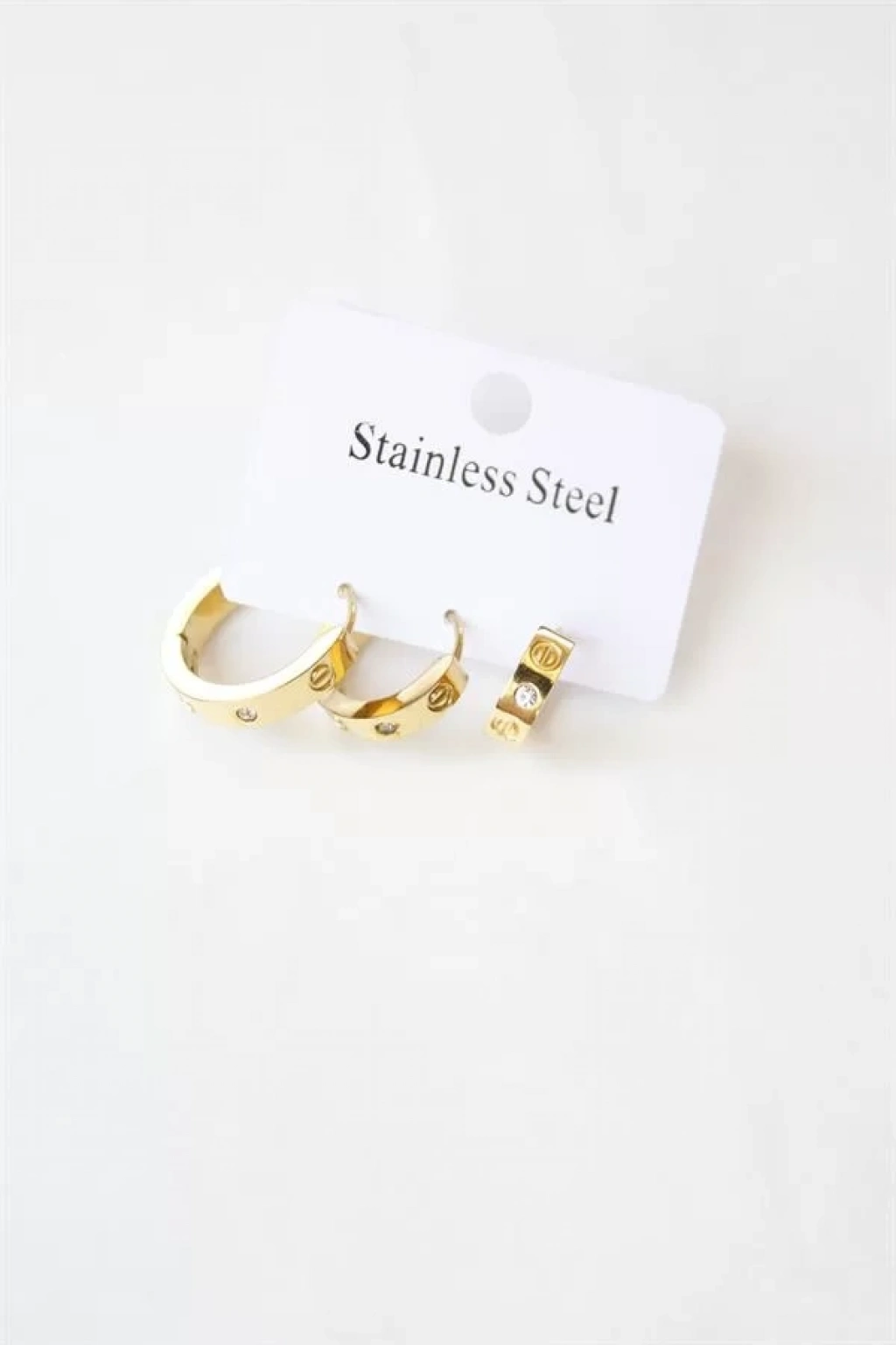 3'lü Taşlı Çelik Halka Küpe - Altın