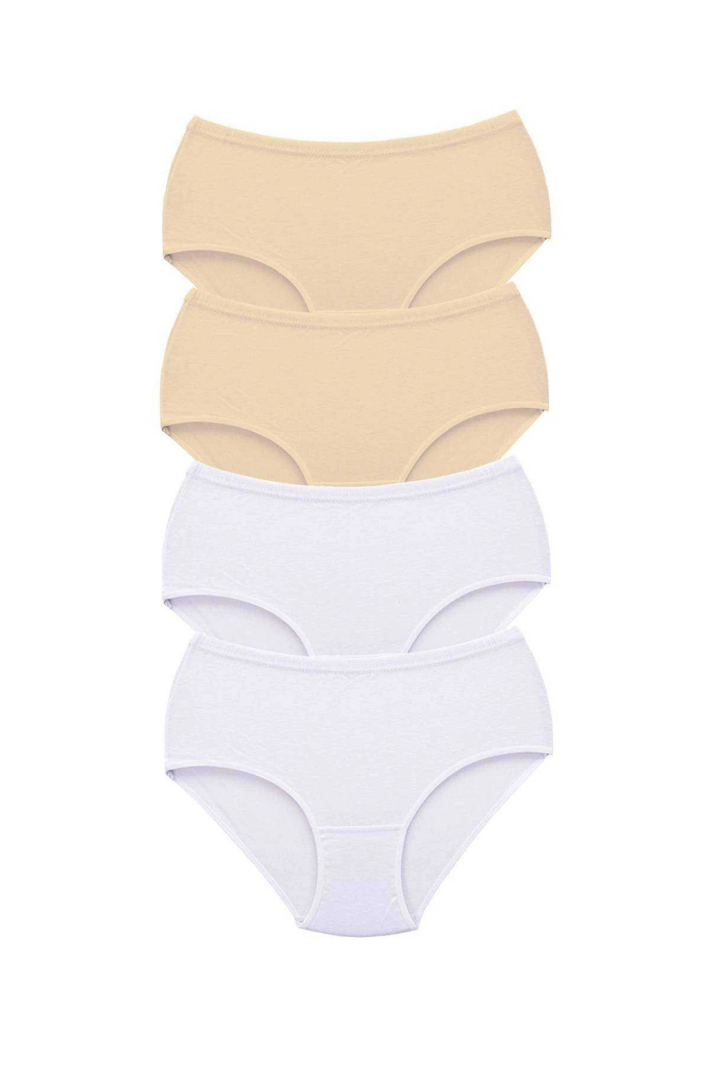 4 Adet Tutku Kadın Yüksek Bel Bato Kalın Lastik Külot Ten Beyaz