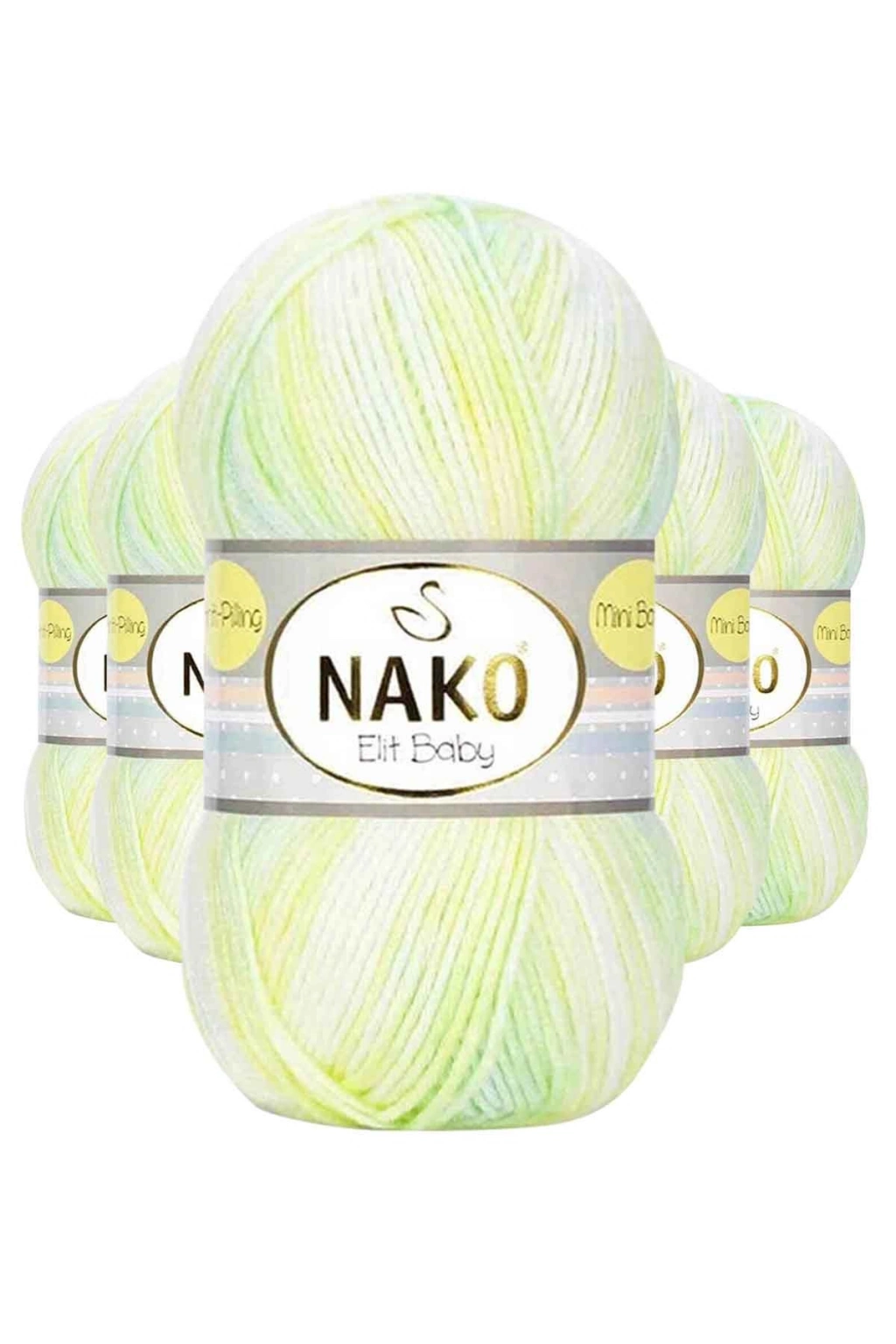 5 Adet Nako Mini Batik Bebe El Örgü İpi Anti-Pilling Sarı Yeşil 32424