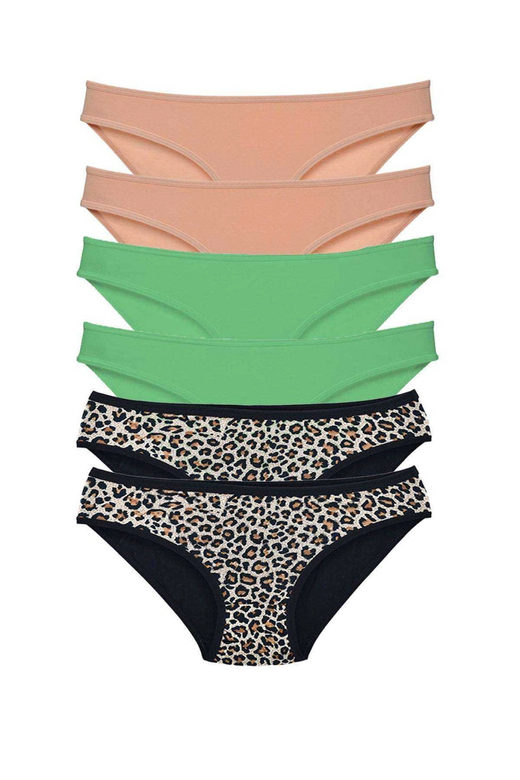 6 Adet Likralı Kadın Slip Külot Leopar Ten Yeşil